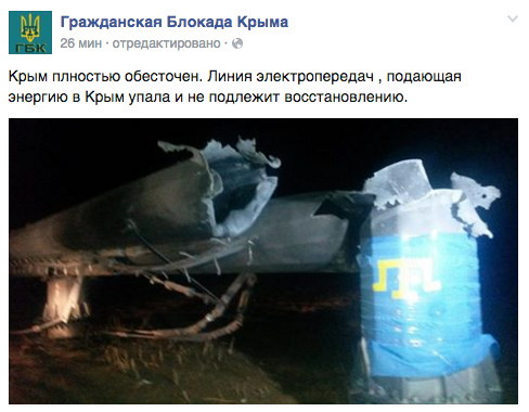 | В Херсонской области взорвали еще несколько электроопор. Об этом на своей странице в Facebook сообщил глава департамента МВД по наркопреступности Илья Кива. http://korrespondent.net/ukraine/359...ktroopory-kyva В Крыму отключения электорэнергии. | |