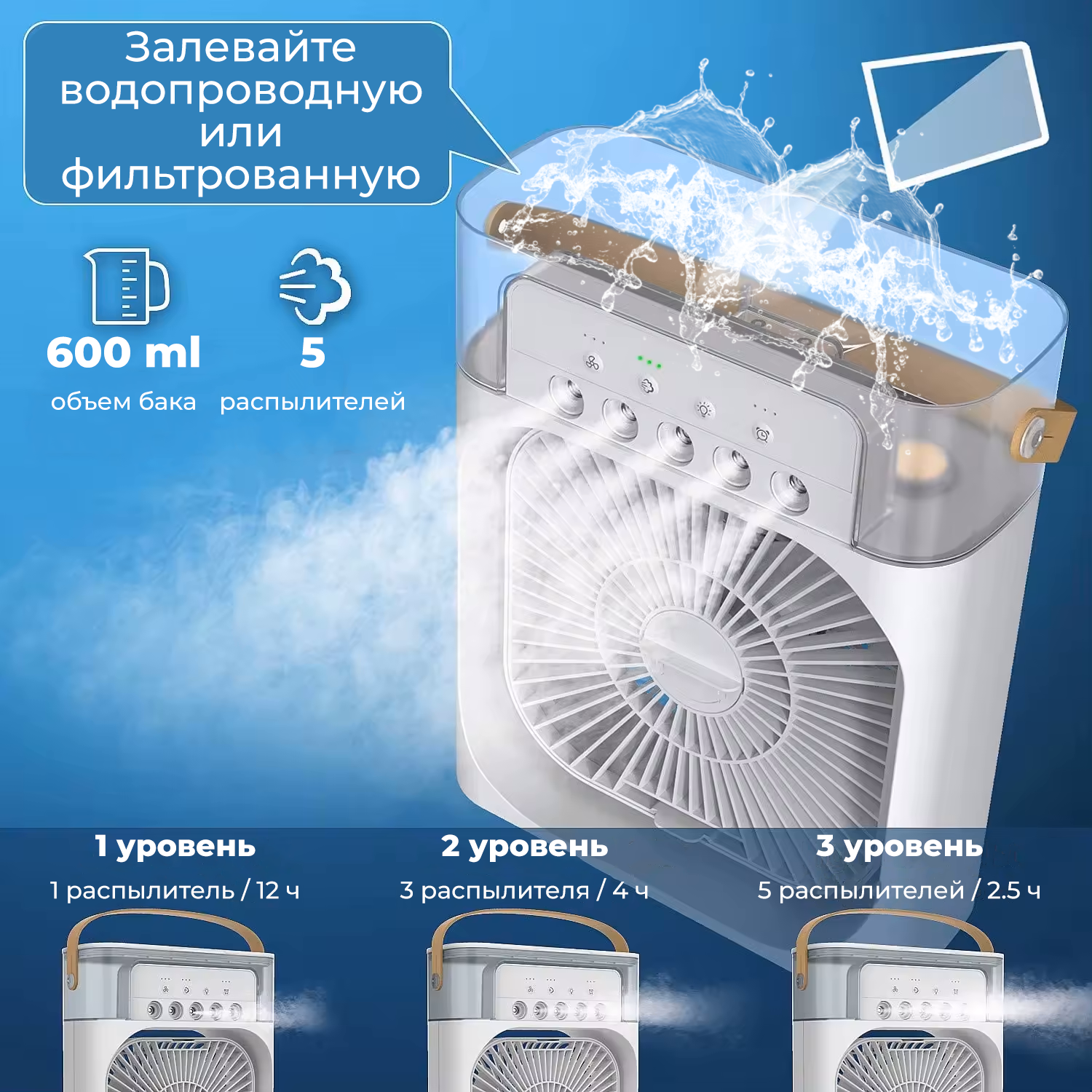 настольный с водой я купил несколько лет назад на алике тогда еще не сильно дорого вентилятор дует, 5 скоростей, светодиоды красиво переливаются - но испаритель хреновый... в общем не рекомендовал бы, лучше купить простой вентилятор который в разы дешевле стоит | |