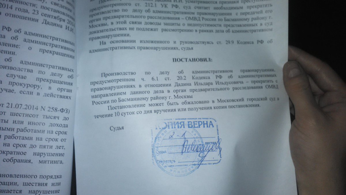 309-Claw15 > дядя ни умеишь читат па руски найми перевотчика. В Постановлении русским по белому напечатано - административное дело прекратить и направить дело на доследование. Суд сказал, что это не административное правонарушение. А сколько раз по Конституции Дадин имел право перекрыть улицу, жечь фаеры и подтираться законом? | | |