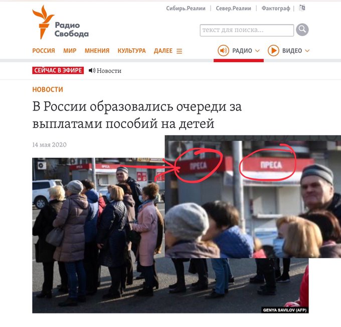 | Журналисты "Радио Свобода", финансируемого Конгрессом США, опубликовали материал о якобы многолюдных очередях за пособиями на детей, о которых объявил президент РФ Владимир Путин. В доказательство очередей выложили фото очереди на украинской автобусной остановке... ![]() Либерастня, без откровенной брехни вообще никак не можете? | | |