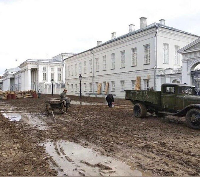Леонид Дегтярёв @leon_elk В Казани снимают «историческое» кино и специально уложили грязь. Фишка в том, что даже 100 лет назад никакой грязи тут не было - улица перед университетом имела мощение и регулярно убиралась. Но художник так видит: если Россия, то должна быть грязь. Очень показательный пример | |