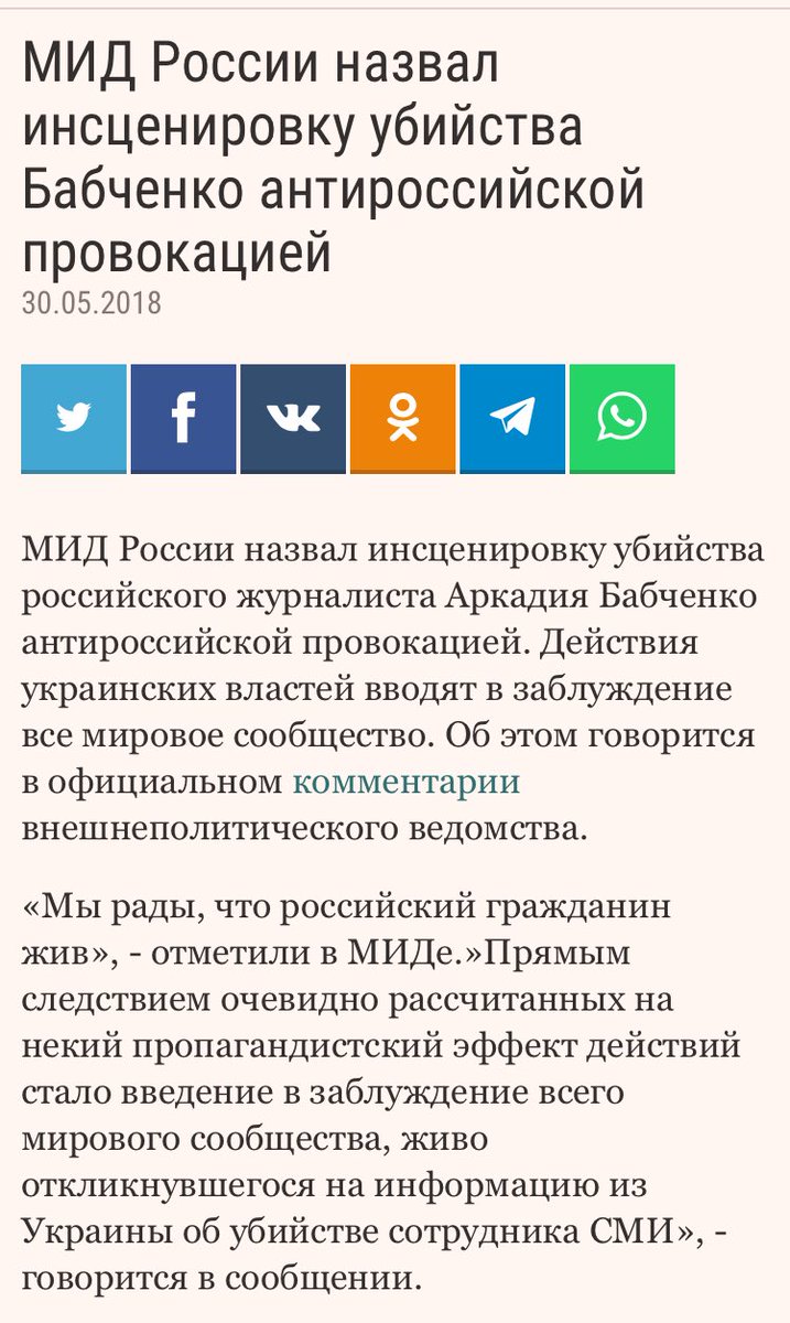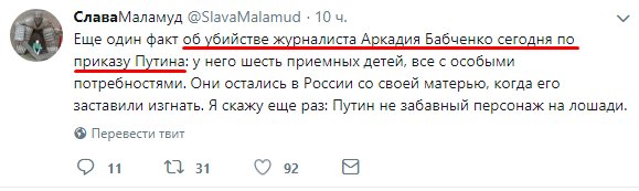 В журналиста Бабченко стреляли. Он в больнице – Муждабаев Журналист Айдер Муждабаев сообщил, что российскому журналисту Аркадию Бабченко стреляли в спину. Киеве на российского журналиста Аркадия Бабченко совершено покушение. Об этом сообщил журналист Айдер Муждабаев в Facebook. "В Бабченко стреляли, в доме, в спину. Увезли в больницу. Ищу в какую, еду туда", – написал он. http://gordonua.com/news/politics/v-...ev-248590.html | |
