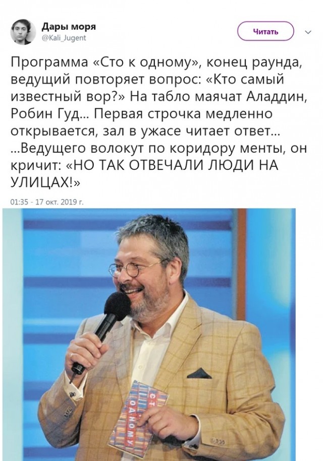 | - Талибан признан террористической организацией, почему вы с талибами встречаетесь официально? - Мы должны вести диалог со всеми, это очень важно! - Может, тогда надо вести диалог также с ФБК и Навальным? - Ах ты русофоб! | |