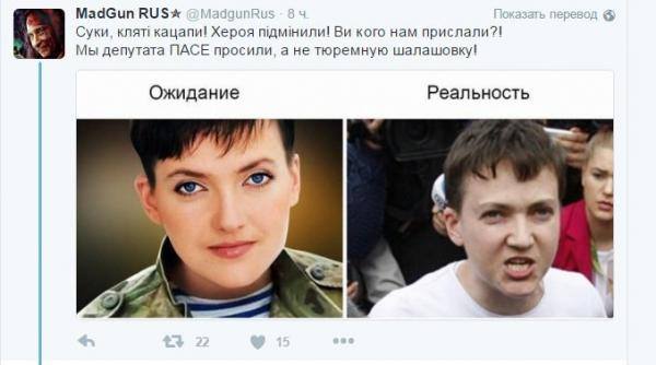Народная героиня Надя Савченко совершила прорыв в минских соглашениях. Пока Кучма ищет поводы сбежать из Минска, а полпред президента Ирина Геращенко рвет на обширной груди платок от «гермес», доказывая, что причастна жирным боком к освобождению пленных воинов света, Надя Дарк работает. Все по лекалам Тимошенко, по ее излюбленной схеме: «Они кричат — вона працюэ». Народный депутат Украины от «Батьківщини» Надежда Савченко совершила визит в Минск, где встречалась с лидерами ДНР и ЛНР Александром Захарченко и Игорем Плотницким. В принципе Наденька давно призывала сесть за стол переговоров с лидерами республик, так что новостью это может стать лишь для патриотов, еще вчера оравших «Путин, отпусти Надю». Тем не менее, генетически правильное стадо огорошено поступком героя Украины, о чем в своем Facebook сообщил журналист Петр Шуклинов. По его данным, нардеп и лидеры боевиков «несколько часов общались». Впрочем, сама Савченко отказалась комментировать данную информацию. «Сегодня познакомился с Савченко. Я подошел к ней, представился, что я журналист. Спрашиваю: правда ли это. «Я не для того сюда пришла, чтобы отвечать на ваши вопросы», — сказала Савченко. Я повторил просьбу прокомментировать — ведь это общественно важная информация, если депутат парламента контактирует с террористами. «Я что, неясно сказала?», — возмутилась она. Но ты же не мне отвечаешь — ты людям отвечаешь, аудитории, украинским гражданам», — написал посланный [*****] шакал пера. Палочка дрожжей, брошенная в патриотичный унитаз, немедленно сделала свое дело и соцсети закипели ненавистью к вчерашнему кумиру. Савченко уже успели назвать недостойным человеком, допустили, что нардепу светит статья за измену Родине, и выразили полное разочарование ее поступком. «Смотрю я на Надежду Савченко и думаю: сколько же у нас д*рьма всплыло, а как хотели перемен. Кстати, не только на неё», — отметил глава редакционного совета «Обозревателя», Михаил Бродский в Facebook. «Кажется, уже давно пора снимать депутатскую неприкосновенность с Савченко. И с тех, кто пропихнул ее в депутаты», — выразил мнение политолог Александр Палий. Впрочем, забрать у нашей Нади хотят не только мандат, но и звезду героя. «Необходима процедура снятия звания героя страны», — подтверждает эксперт с ником Джеймс Купер, чисто украинское ФИО, да. «Если информация о встрече Надежды Савченко с главарями ДНР и ЛНР в Минске верна, тем более при участии российских спецслужб, это статья об измене Родине. Без вариантов. В любом случае, Надежда, похоже, уже заигралась. Лётчица-залётчица», — излился придворный политолог Банковой Тарас Березовец. «Она уже давно просится на нары))) Ау, СБУ)))» — отреагировали на рефлексии Березовца верные адепты. И хотя некоторые попытались оправдать встречи депутата от «Батькивщины» необходимостью любыми методами выручать пленных бойцов ВСУ, этих «умников» тотчас же затоптали профессиональные патриоты, объяснившие, что «заигралась не Надя, и не ее обвинять в непоследовательности. Она, как играла в игру ФСБ так и играет». «Мурашки по коже, когда читаешь, что депутат Надя несколько часов общалась с Захарченко и Плотницким, а саму встречу в Минске организовала Федеральная служба безопасности России при содействии посольства РФ в Беларуси. Пугает не еб*нутость самой Нади, которая уже воспринима