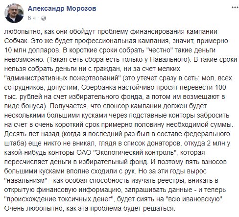 | А по факту из всех сообщений написанных в этой ветке, такое ощущение что большая часть исходит от сапожников, которые решают «как все поделить», начитавшись переписку Энгельса с Каутским. Собчак делает правильные дела. Навальный потонет очень быстро. Вам будет это понятно только весной 2018. | |