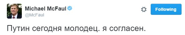 «Отличный ход (В. Путин). Я всегда знал, что он очень умён», — написал Трамп в Twitter.
