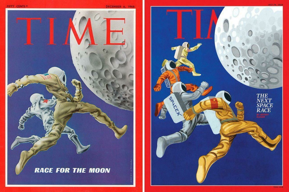 Обложки журнала Time, посвященные лунной гонке. Слева — 1968 год, справа — 2019-й. ![]() | | |