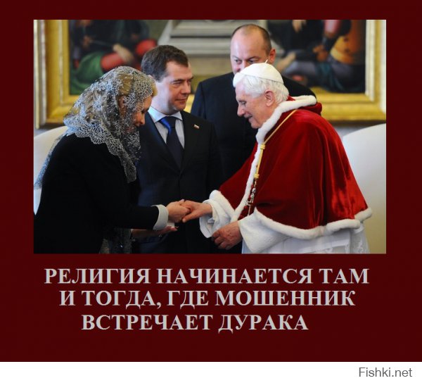 Сидят апостолы, играют в кости. К ним подходит Иисус: - А мне можно с вами? - Ну, садись. Павел кидает - у него 11. Петр кидает - у него 12. Кидает Иисус - у него выпадает 13. Петр: - Без чудес, Господи, на деньги играем! | |