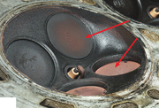 | ![]() ГБЦ ЗМЗ 405 после пробега 50 тыс. км на газе. Выпускные клапана провалились в седла | | ||