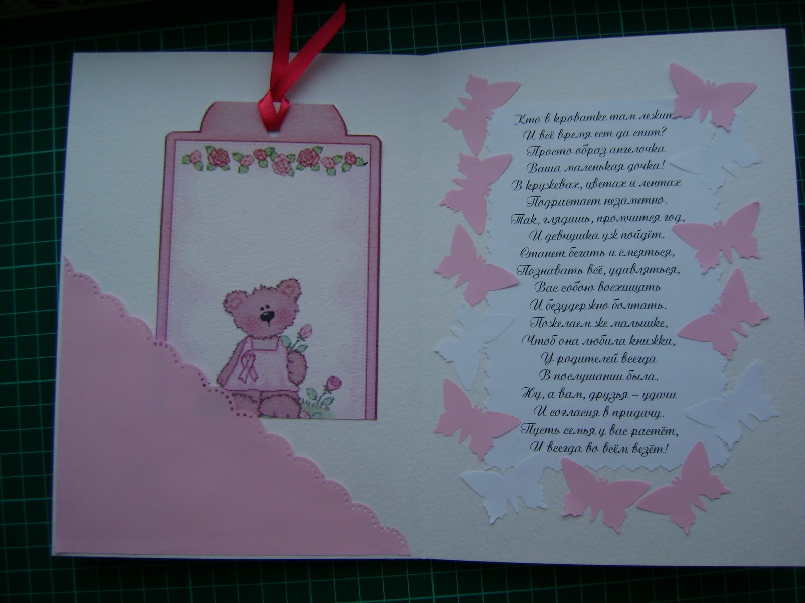 А я вот хочу похвастить маленько (комментарии приветствуются и причем обязательно) сестренка моя, сидючи в долгосрочном декрете, увлеклась скрапбукингом: открытки, альбомы ручной работы. в общем глядите и хвалите, девочке срочно нужна поддержка, позитиву не хватает :) Три полуграции. (открытки для подружек) ![]() Бабулина открытка ![]() Мамулина ;) ![]() А это мой подарок, а в коробочке куча бабочек и свиток на котором надо записать свое заветное желания, все еще не придумала Валентинки А эта очаровательная открытка, для "купания новорожденной подружки" внутренне наполнение Мини-альбом для тематических фотографий и вот такой красотой альбомчик заполнен :))) | | |