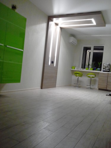 Всем привет. Получилось "Я, Вань, такое же хочу", но больно понравилась идея, тем более, светильник нужен был. Вчера наконец доделал основу.![]() Получилось вот так, под светильником поставлю остров. По деньгам точно не скажу, тысяч в 11 вышло: 1.5 листа ЛДСП плюс ради сохранения рисунка была изготовлена П-образная деталь + 15 метров светодиодов + блок питания + распил + крепёж + доставка + розетки, провода и т.д. Осталось лишь светорассеиватель сделать - оргстеклом "щели" закрыть. Увы и ах, заподлицо никак не получится, щели "гуляют" P.S. Сверху - натяжной потолок, нижняя часть сантиметров на 30 закрыта светорассеивателем. | | |