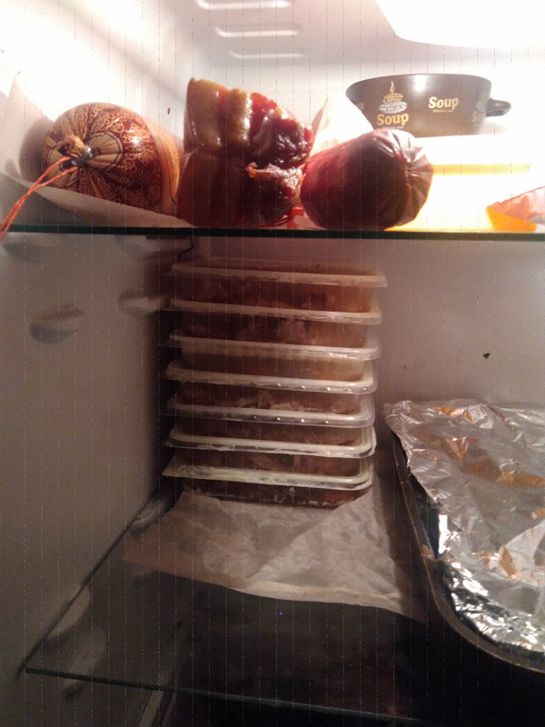 | Остались еще запасы.)![]() Закончилась сыровяленная копченая, длиной 1,5 метра. Отэто бяда.( Достал буженину, давлюсь с собственноручно мариноваными шампиньенами и вешенкой.) | |