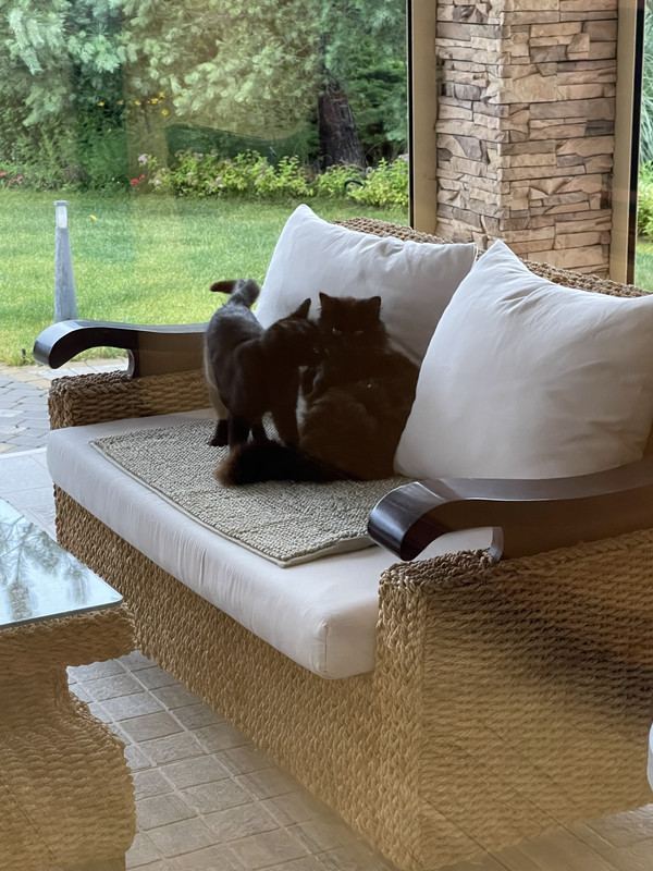 Оккупанты мои:-) на хозяйском диванчике текстильный дизайн уже сотворили: лапочками своими отметины расставили на подушках. ![]() | |