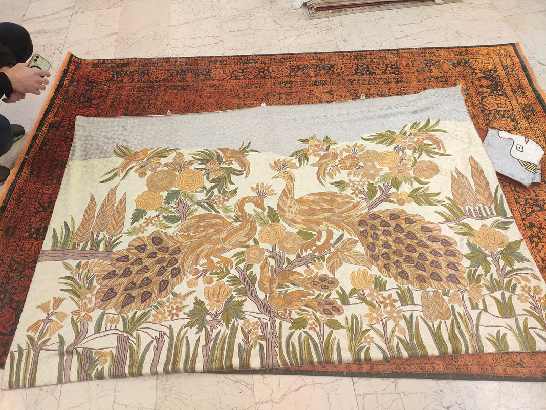 | ![]() Вот это панно с павлинами. Это все вышивка. Как он сказал ручная вышивка, но что-то не верю. Ну он задрал цену. | |