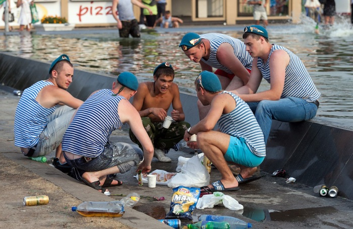 | 18-_Шульц > Утром, в шесть уже встретил одного в майке и берете; поздравил, он ответил, хотя язык и ноги немного заплетались...)) | |