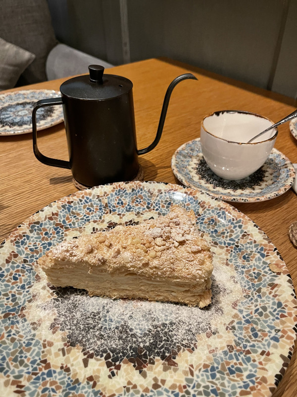 | Ужин тяжеловат для меня, но не удержалась, съела ещё горячим кусок сабурани. Вкусно. | | |