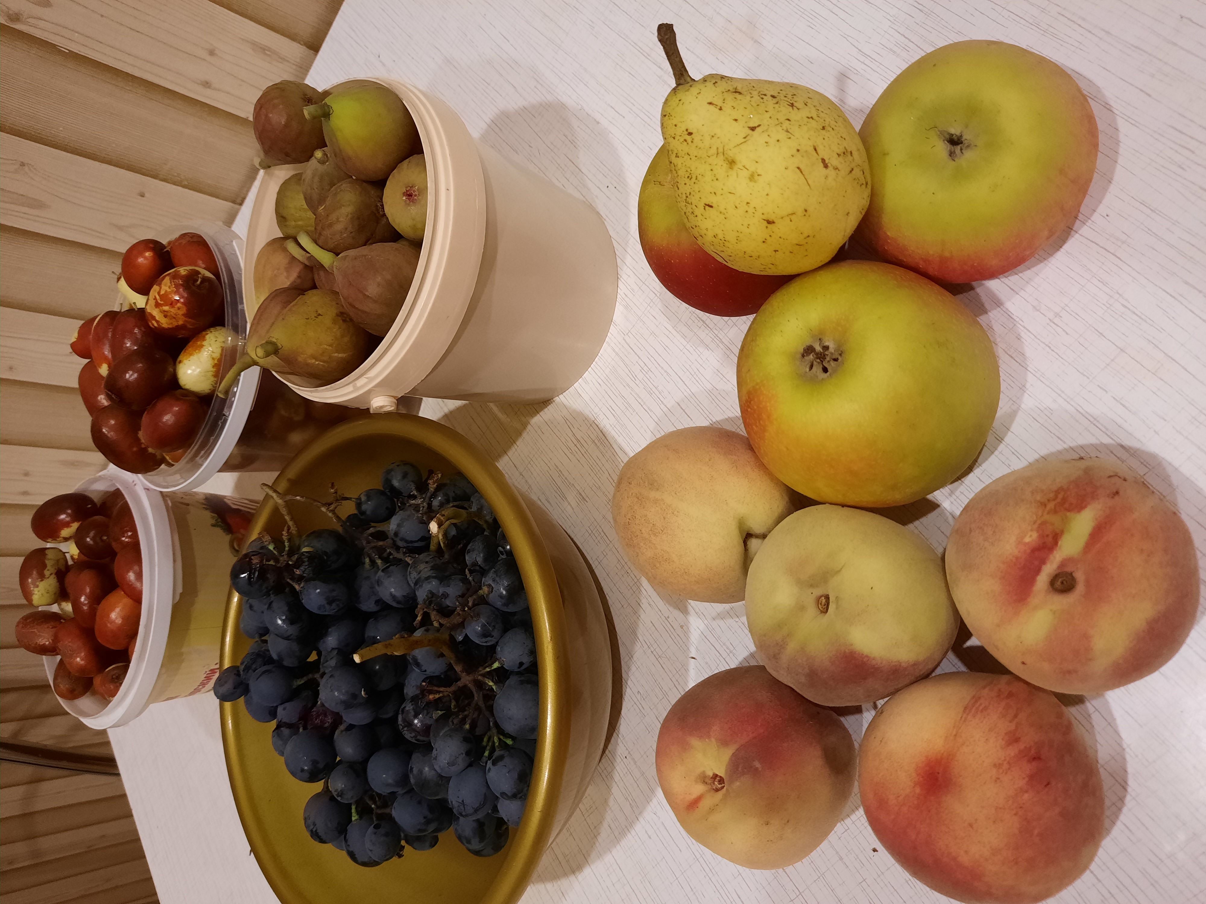 Осенний натюрморт... Унаби, инжир, виноград, персики, яблоки, груша. | |