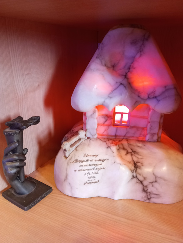 | Да, слоники были, ещё домик-ночник из мрамора, очень тяжёлый и большой. Поменяла на лёгкий современный, а тяжёлый отнесла на мусорку. Но рыбку из мрамора оставила, всё ж таки рыбка. Это бабушке на работе дарили, за хорошую работу от профсоюза.) Вазы из хрусталя ещё стоят, но цветы ставлю в стеклянную вазу, она мне больше нравится.) | | |