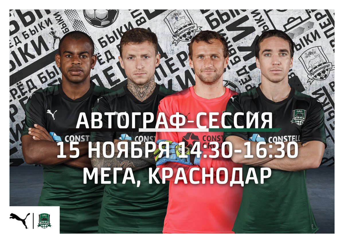 | 5 ноября в магазине PUMA в МЕГА Адыгея пройдет автограф-сессия с игроками «Краснодара»: Павлом Мамаевым, Андреем Синицыным, Маурисио Перейрой и Жоаозиньо   |  | |