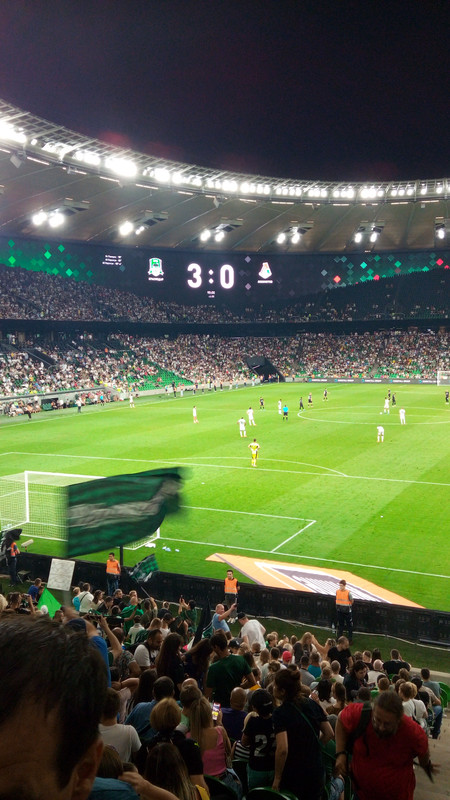 Игра просто чудо, наши забегали, хватило сил до конца игры, несмотря на добавленные 6 минут. Счёт 3:0, было нас на стадионе 25226 человек. Голы красавцы, индивидуальная игра заморских игроков..![]() | | |