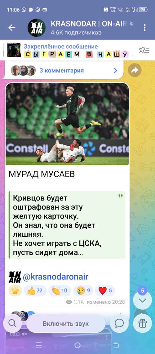 На 4-й минуте ответного четвертьфинального матча Пути РПЛ FONBET Кубка России «Краснодар» — «Оренбург» Никита Кривцов при праздновании гола надел маску и на ровном месте заработал предупреждение. Судья Ранэль Зияков поступил в полном соответствии с правилами, в которых говорится, что «игрок должен быть предупрежден, если он закрывает голову или лицо маской или другим подобным предметом». Желтая карточка стала для Кривцова второй в четвертьфинале. Если верить протоколу на сайте РФС, первую он получил на 90+4-й минуте встречи в Оренбурге (3:1) за неспортивное поведение. Таким образом, краснодарец заработал дисквалификацию и пропустит следующую кубковую игру. В Кубке России к автоматической дисквалификации ведут каждые два предупреждения, полученные футболистом или официальным лицом в разных матчах. Перед стартом четвертьфинала все желтые карточки, заработанные на предыдущих этапах, были аннулированы. https://dzen.ru/a/aSchIJmXjixmdjer?from_site=mail | | |