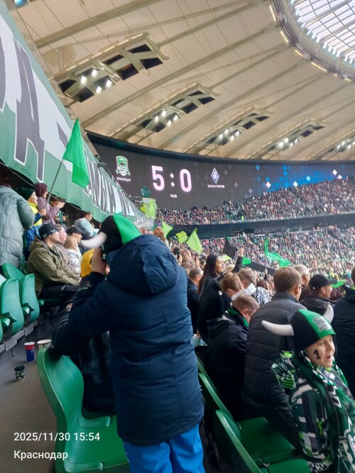 В присутствии 25921 зрителей , наша команда добилась такой нужной нам всем, победы, счёт на табло. Боязно было, чтобы судья Карасёв не сунул из-за вредности жёлтую карточку Сперцяну (тот сидит уже на трёх и это бы закрыло Сперцяну дорогу на матч с ЦСКА), но обошлось, все наши вроде уцелели для игры 07 декабря 2025 года.![]() | |