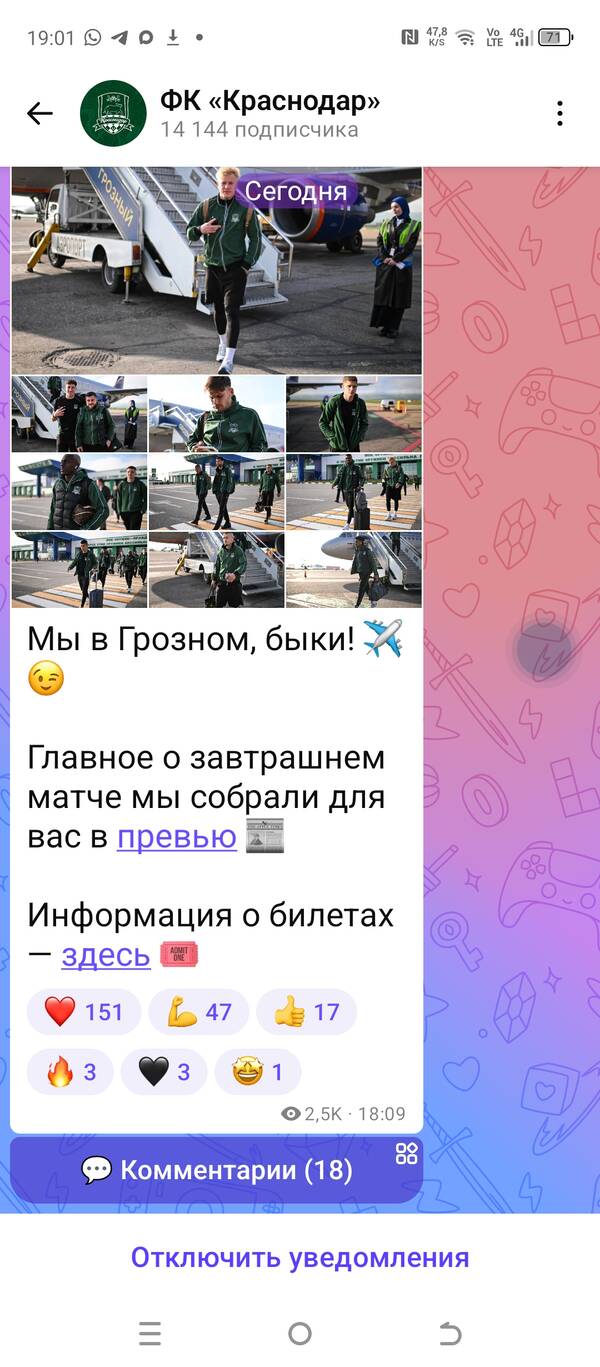 Команда ФК "Краснодар" сегодня прибыла в Грозный, завтра игра с Ахматом: | |