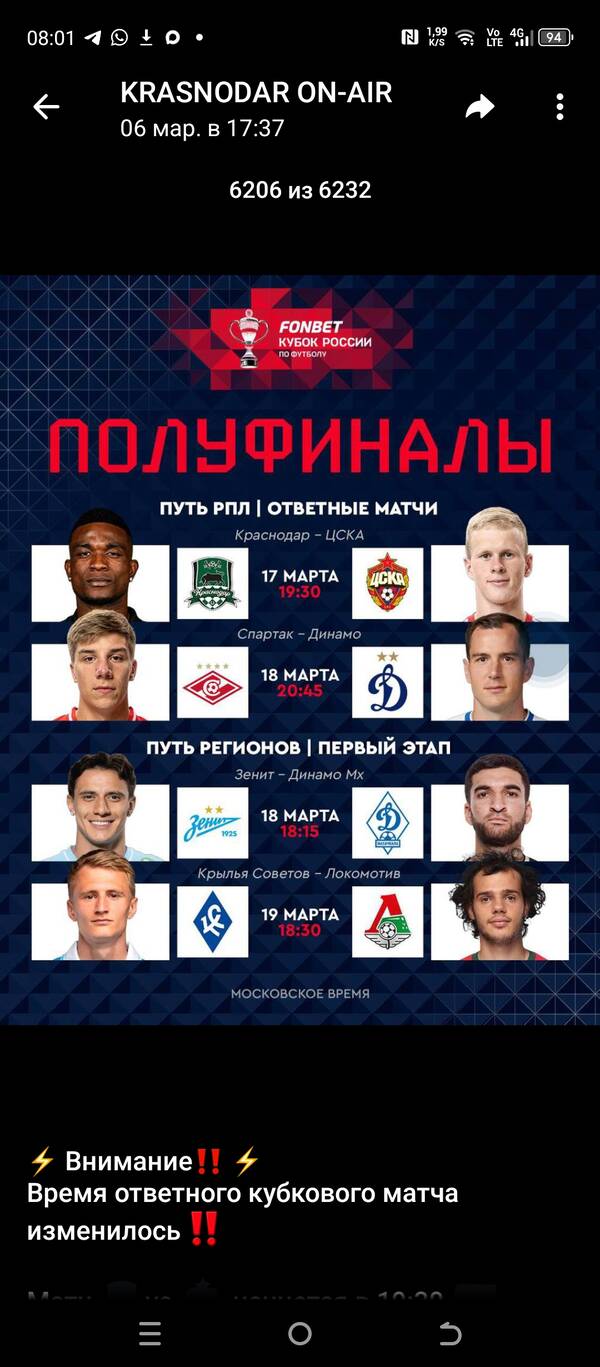 138-Дятловед > Да и даты встреч, кроме нас, попереносили: Краснодар время перенесли с 20:45 на 19:30 | |