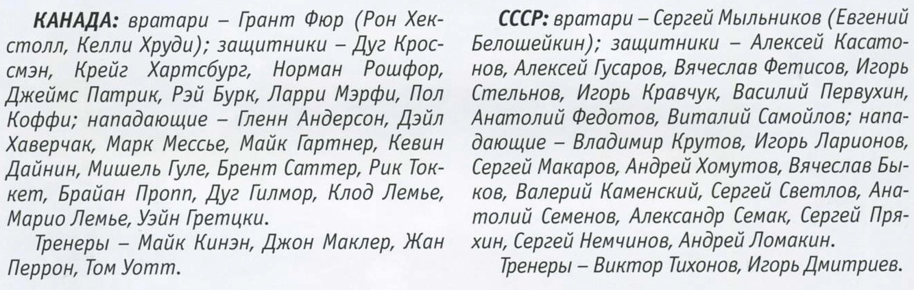 Режим с.изо продлили,вирус пока не достал,значит есть время глянуть классику. В фильме снимались: Серия 1. Краткое содержание- камбэк.Шо? Как? https://www.youtube.com/watch?v=pyDLKuvRkcc Серия 2. Камбек.Шо? Как? https://www.youtube.com/watch?v=sO5K2tCqYUw Серия 3. Камбэк. Шо? Как? https://www.youtube.com/watch?v=5JW5IkIWrGc Когда снимут что-нибудь лучше или хотя бы на уровне-позовите пжлста. Не,конечно сложно глазам привыкнуть к качеству кинопленки(но смотрели же в Ярославле как то хоккей до сего года включительно на аналогичном качестве),но можно же не садить зрение и смотреть период в день- и на весь апрель почти хватит,и остальным органам тонуса добавит. Вот когда звучало в эфире -kruto v -чо имели в виду комментаторы? Владимира или то что он делает? А вот кто kruche -Крутов с Макаровым в большинстве,Крутов с Макаровым в меньшинстве, Лемье с Гретски или Каменский во втором матче. А может Фетисов в третьем (за который можно простить два привоза в первом матче (хвала всевышним- неголевых ) и Адмирал) или Хаверчак (не путать с Кавалчак,сер). Ну или нойеровские слаломы от Белошейкина во втором? Мудоковатость Мессье на фоне искренних извинений Макарова при хайстике (в третьем)? Туда-сюда,бах,жах, штанга,перекладина,гол ,лови другой , не попал в пустые с 3-х сантиметров- кто всё это придумал?. P.S. 1,6 на СССР. | |