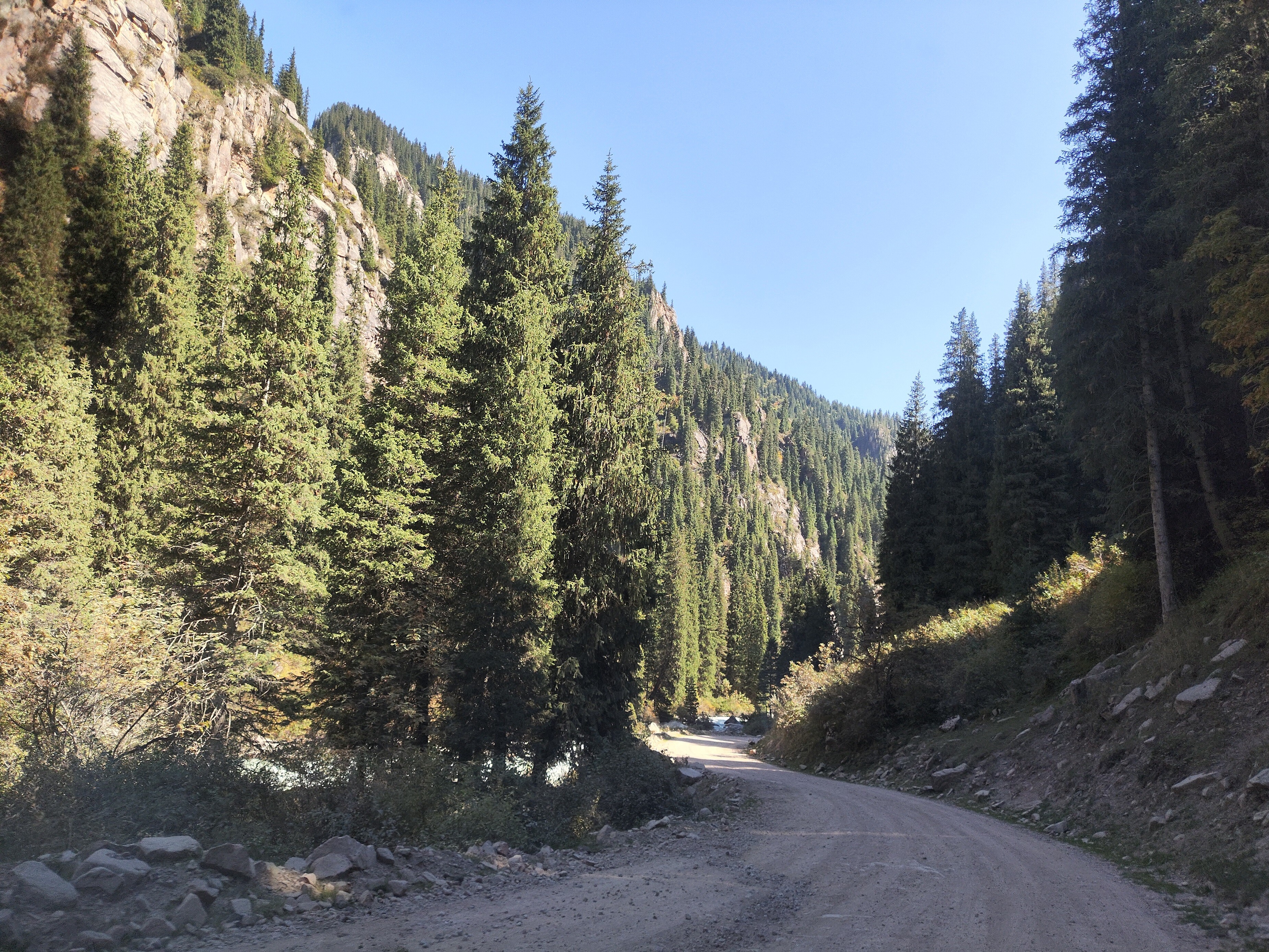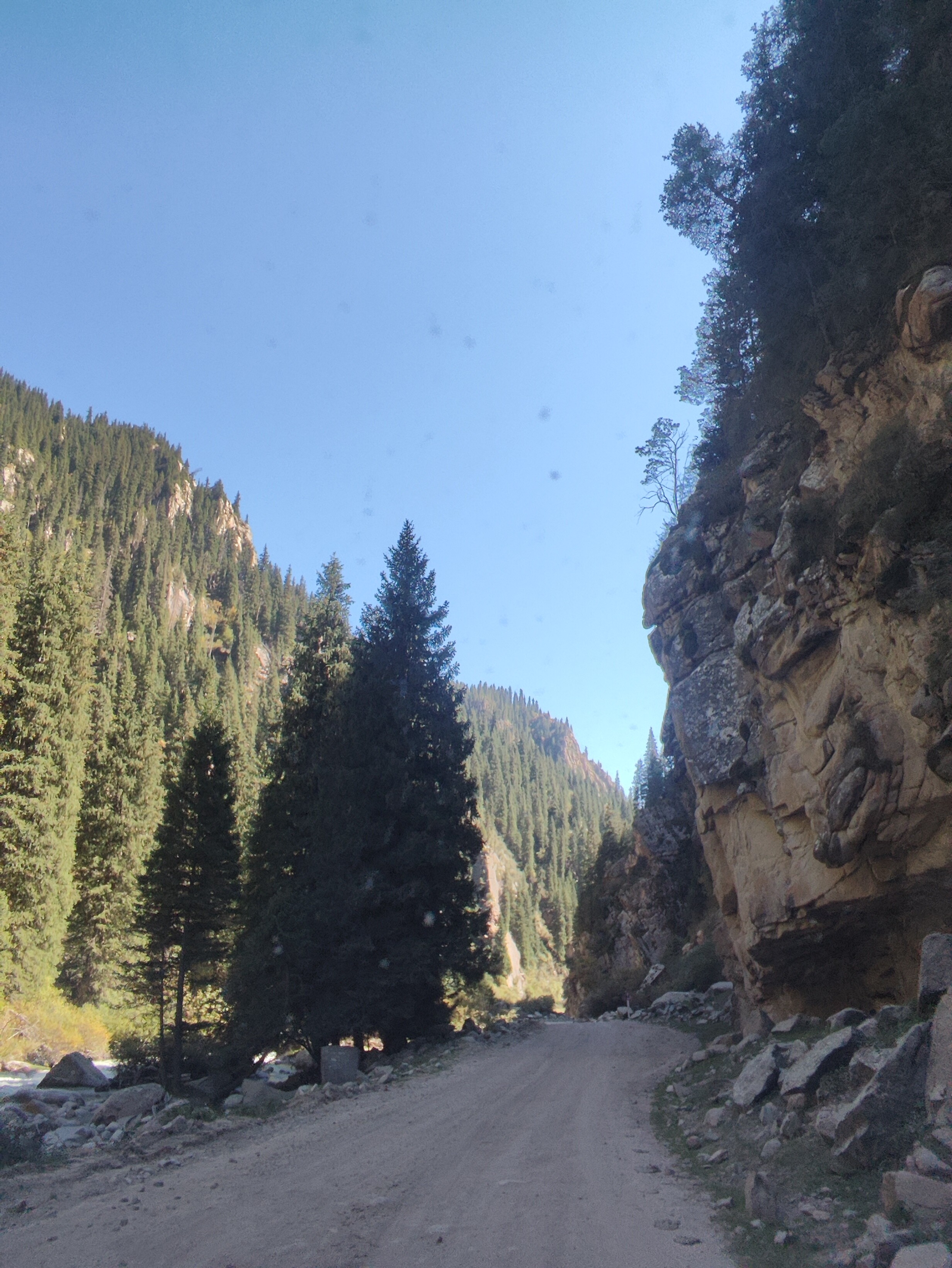 Но довольно уже про скучную геологию с баллистическим камнеметательным уклоном. Несколько общих видов местности в ущельях на северном хребте, Кюнгёй Алатоо. Это постепенный выход из ущелья реки Чон-Ак-Суу, в конце уже видны в створе ущелья кусочек Иссык-Куля и лежащий за ним Терскёй- Алатоо, на последнем снимке уже с побережья. В этом месте ширина озера максимальна, около 60 км, и хребет здесь виден с расстояния 70-80 км. За счёт прозрачности горного воздуха кажется, что он не так далеко, ведь вершины хорошо видны. Но это типичное обманчивое визуальное впечатление в больших горных системах. А высота этих вершин подходит к 5 километрам, там между ними раскинулись целые обширные и протяжённые плато с озёрами на высоте 4 км. Хребет этот на самом деле исполинский. Предыдущие "камнемёты" находятся именно там, но чуть ниже снеговой линии. ![]() ![]() ![]() ![]() ![]() ![]() | |