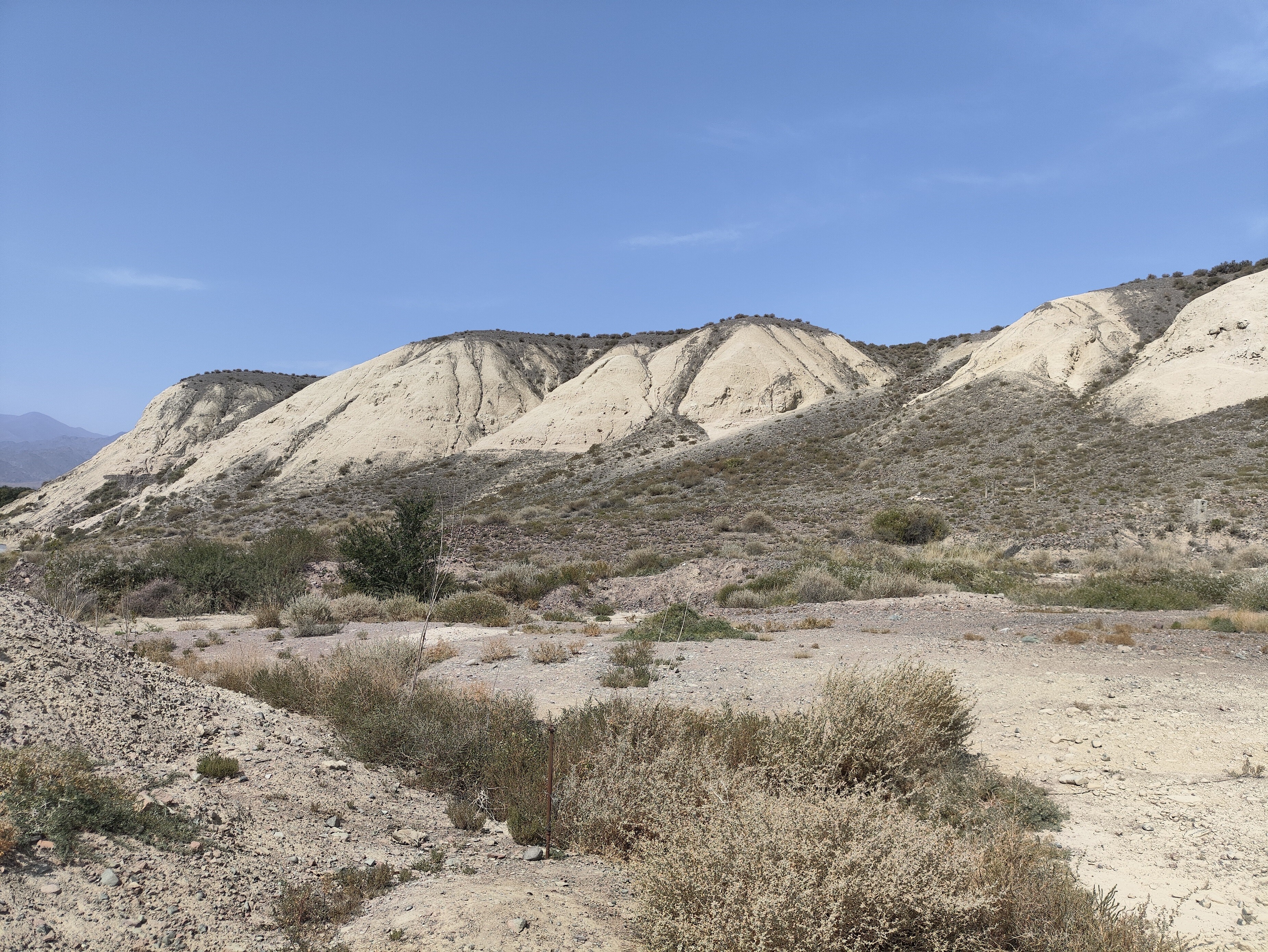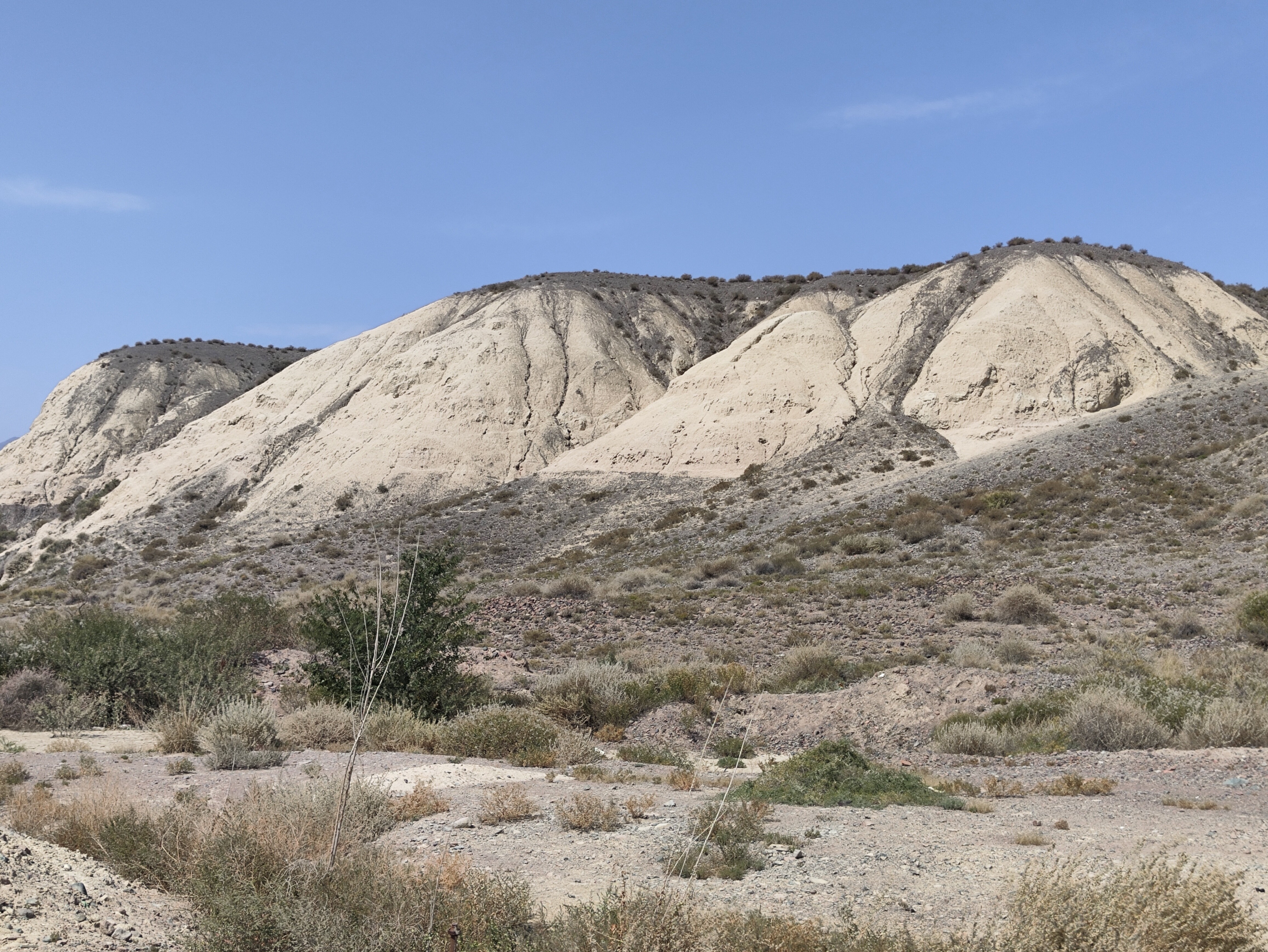 И можно ещё добавить толщи лёссовых отложений, настолько характерные для Центральной Азии, что пропустить их не хочется. Это отложилась пыль, поднимаемая ветрами во время пыльных бурь. Тонкая пыль и тонкий песок, всё вместе масса серо-желтого цвета, похожая на суглинок и супесь одновременно. В толще лёсса дунгане выкапывали многоквартирные жилища и жили там. Лёссовый массив вблизи я забыл снять, хотя ходил по нему не раз. ![]() ![]() ![]() ![]() | | |