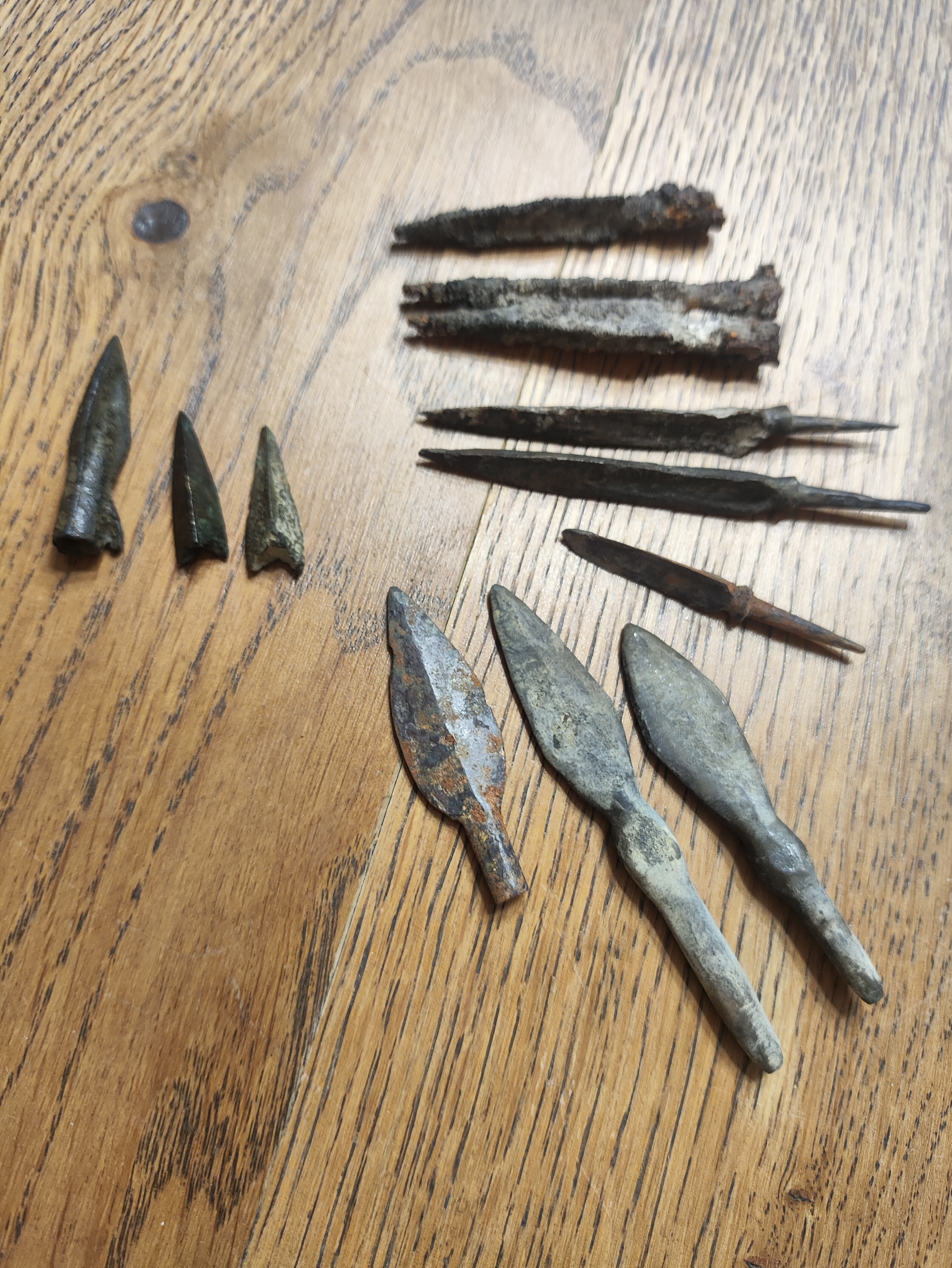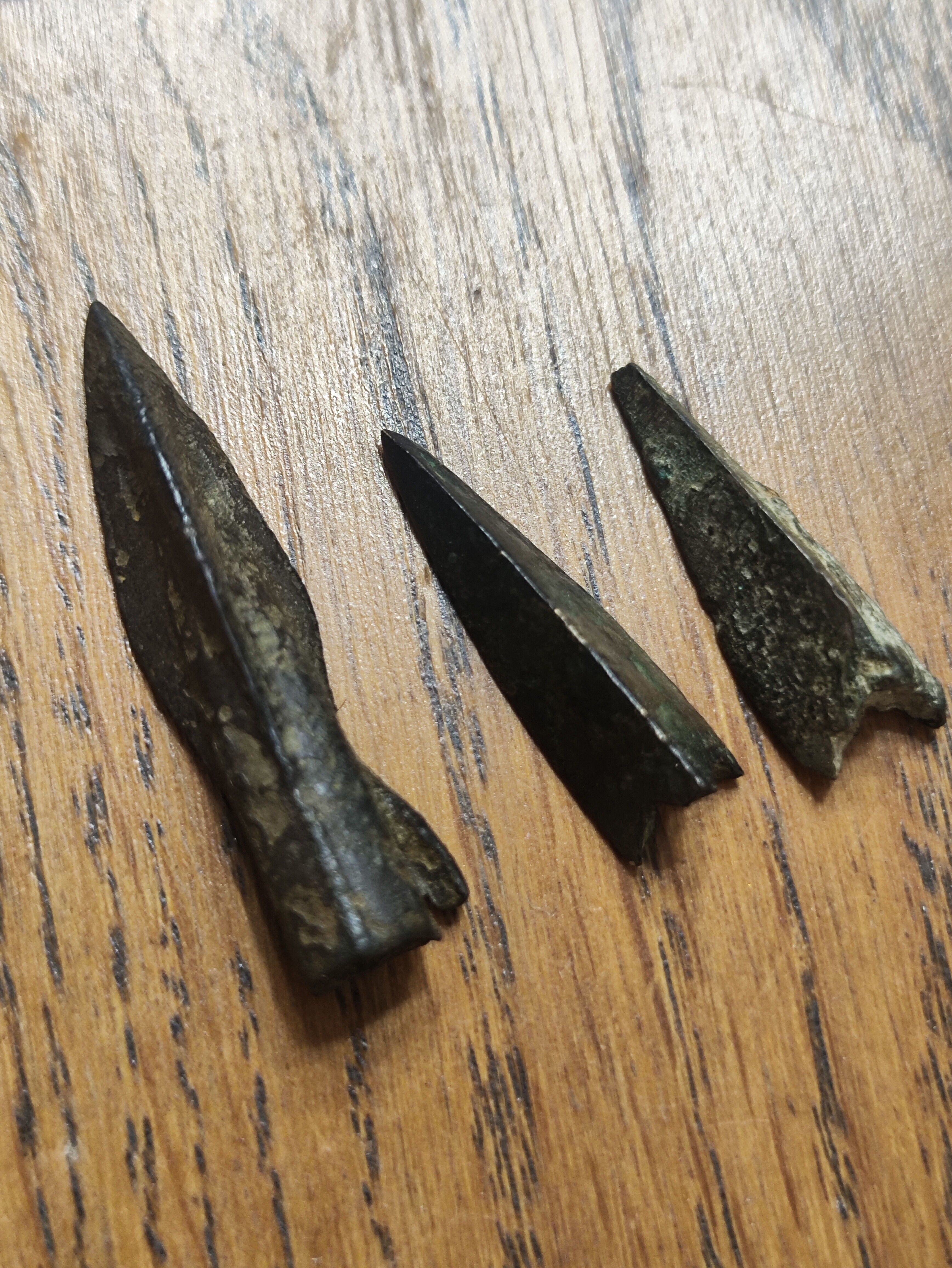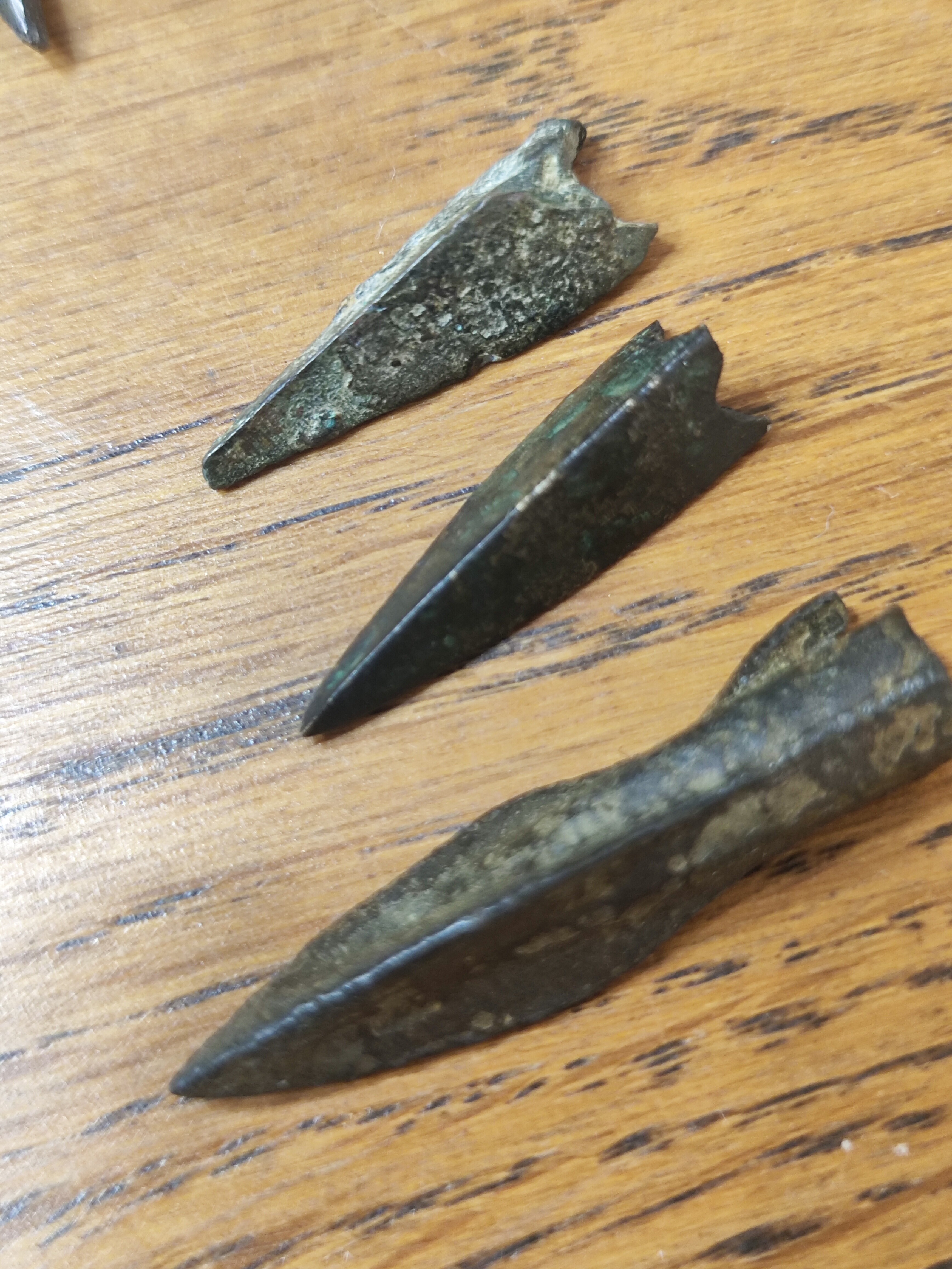 Тут бронзовые наконечники стрел скифов. Более ранний крупнее, с втулкой для насаживания на стрелу и зубцом неизвлечения, это 5-7 век до н э. Позже скифы доработали наконечники до трехгранной пули, надеваемой на тростниковую стрелу. Острые края "пули" обеспечили неизвлекаемость из раны. Это примерно 5 век до н э. Мне легко говорить про эти эпохи. Потому что подлинный материал всегда под рукой. Настоящие образцы. ![]() ![]() ![]() ![]() | |
