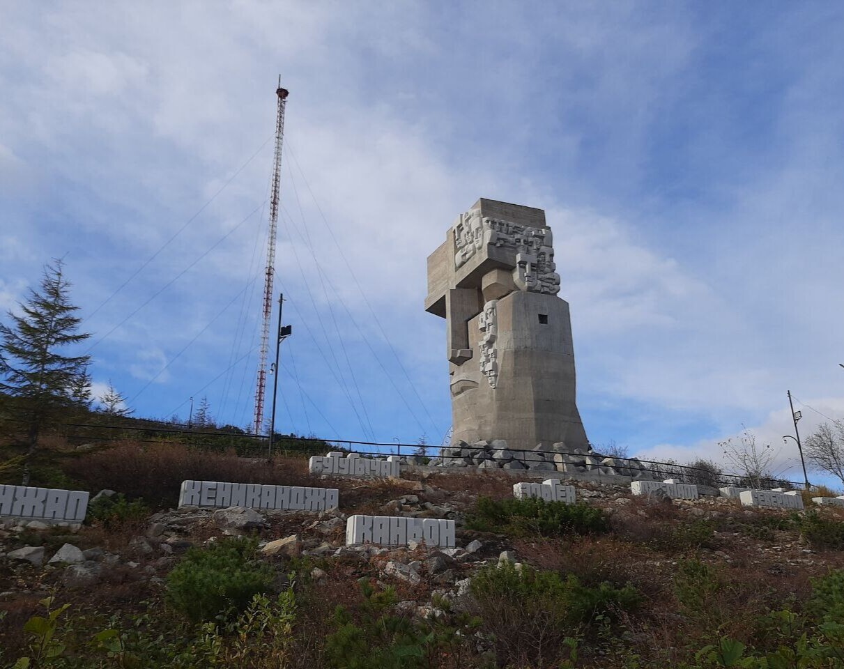 634-Эврика > Это скульптура работы Эрнста Неизвестного "Маска Скорби" в память о репрессированных. Стоит на берегу Охотского моря. Это Магадан вчера. | |