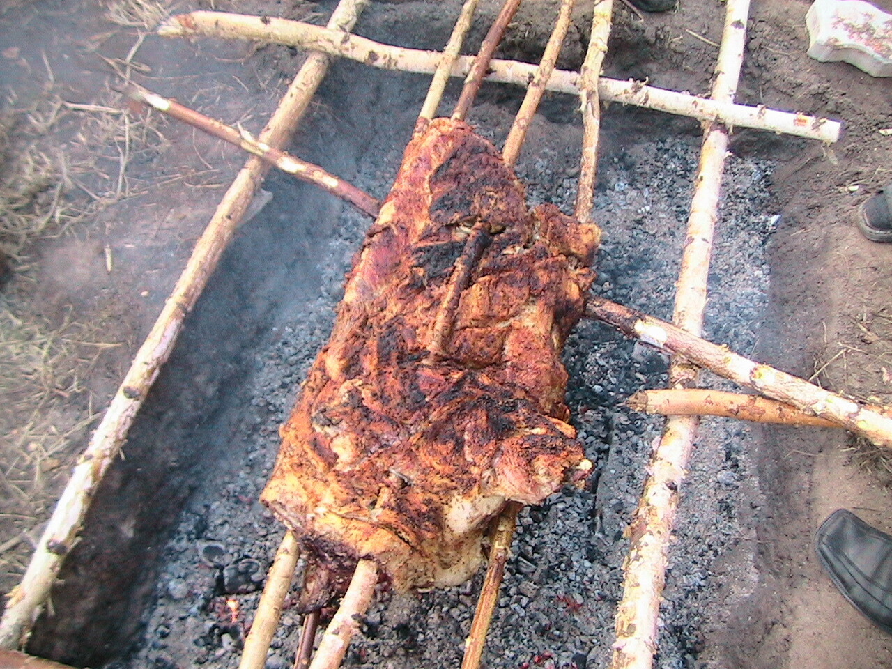 | Я бы и на кирпичи с углями сейчас согласился не моргнув глазом. Хоть левым, хоть правым. Иногда жарю просто на прутьях, срезанных рядом в зарослях. Мне пофигу в целом. | | |
