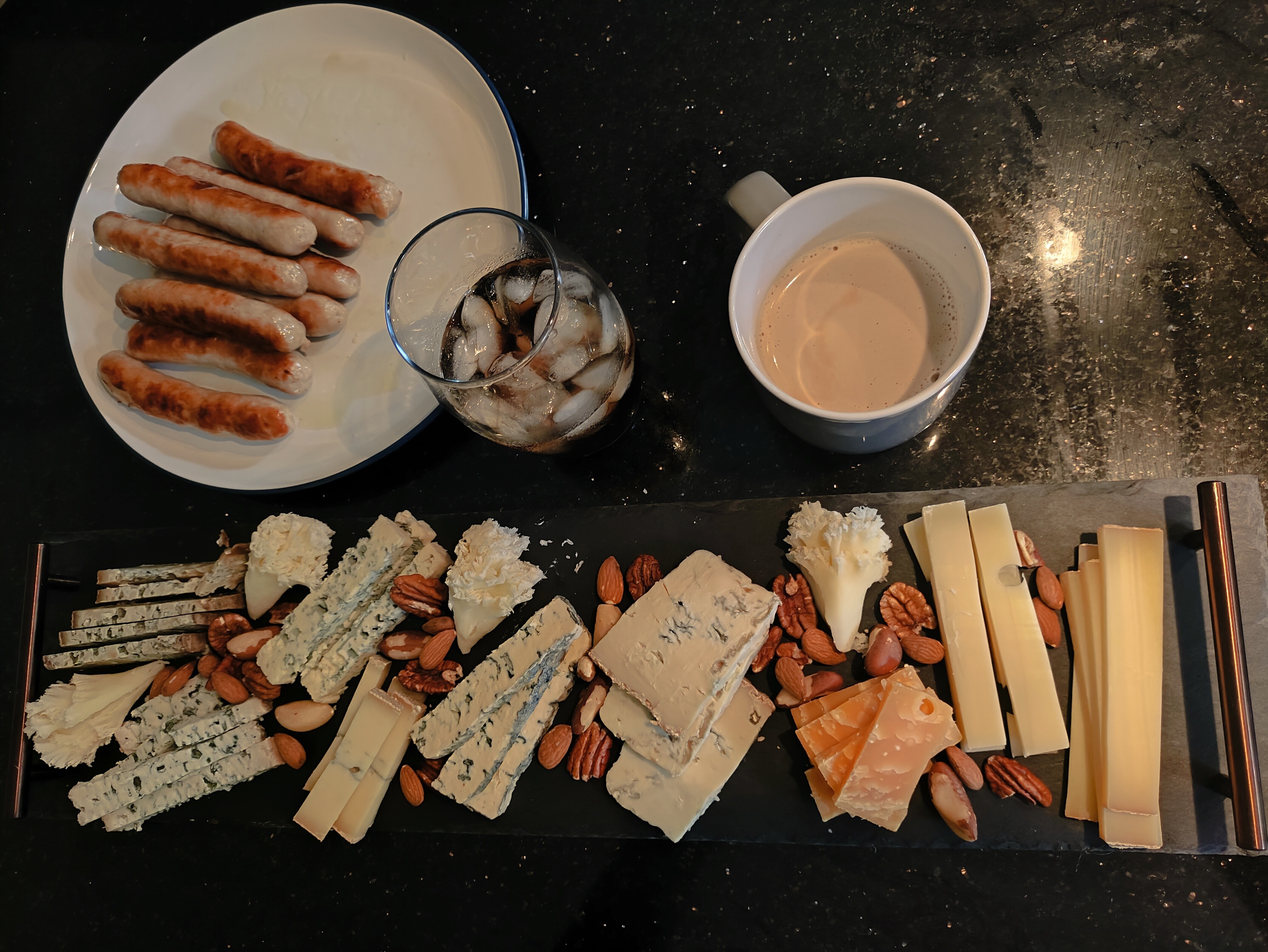 Купаты в Ирландии шли обычно для оттенки вкуса сыров. Белковое надо перебивать/освежать белковым же, чтобы сильно не сбить белковый вкус. Впрочем, это, наверное, ненужные детали. Сыры подавались на тонкой каменной доске, как и положено. На фото видно оббитые края этой доски. А всё вместе располагалось на базальтовой столешнице. Её кристаллизация вышла какая-то средняя, между габбро и диабазом. Это одно и то же магматическое плутоническое вещество из мантии, выходящее в земную кору. Различие только в их кристаллизации. Габбро в виде базальтового расплава внедряется в разломы глубоко в земной коре (интрузии), и там медленно остывает многие тысячелетия, иногда десятки и сотни тысяч лет. За счет этого оно успевает хорошо раскристаллизоваться в крупнокристаллическую структуру. Диабазы - та же фигня, но выдавленные в подповерхностные слои коры, или даже излившиеся наружу так называемым эффузивным вулканизмом. За счёт близости к холодной поверхности Земли они остывают быстро, не успевая пройти дальше мелкой кристаллизации, в которой и остаются; зерна диабазов мелкие и невыразительные, так сказать. Я долго думал, к чему из базальтов отнести эту столешницу из натурального базальта, но так и не пришёл к мнению и остался в колебаниях. Мне подарили там ступку из базальта - это стопроцентный диабаз. А вот насчёт плиты столешницы так и не определился. К сырам (и купатам) вискарь со льдом и кофе с молоком, сменять вкус. То тем прополощешь рот, то этим. Так и плывёшь весь вечер, контролируя дозы, конечно. Иначе как в стрельбе: первые 50 грамм расслабляют мышцы корпуса и повышают результативность стрельбы, а вот дальше уже точность движений снижается, и следующие 50 грамм только вредят результату. На огневой подготовке всегда замечал этот эффект. ![]() ![]() ![]() ![]() ![]() ![]() ![]() | | |