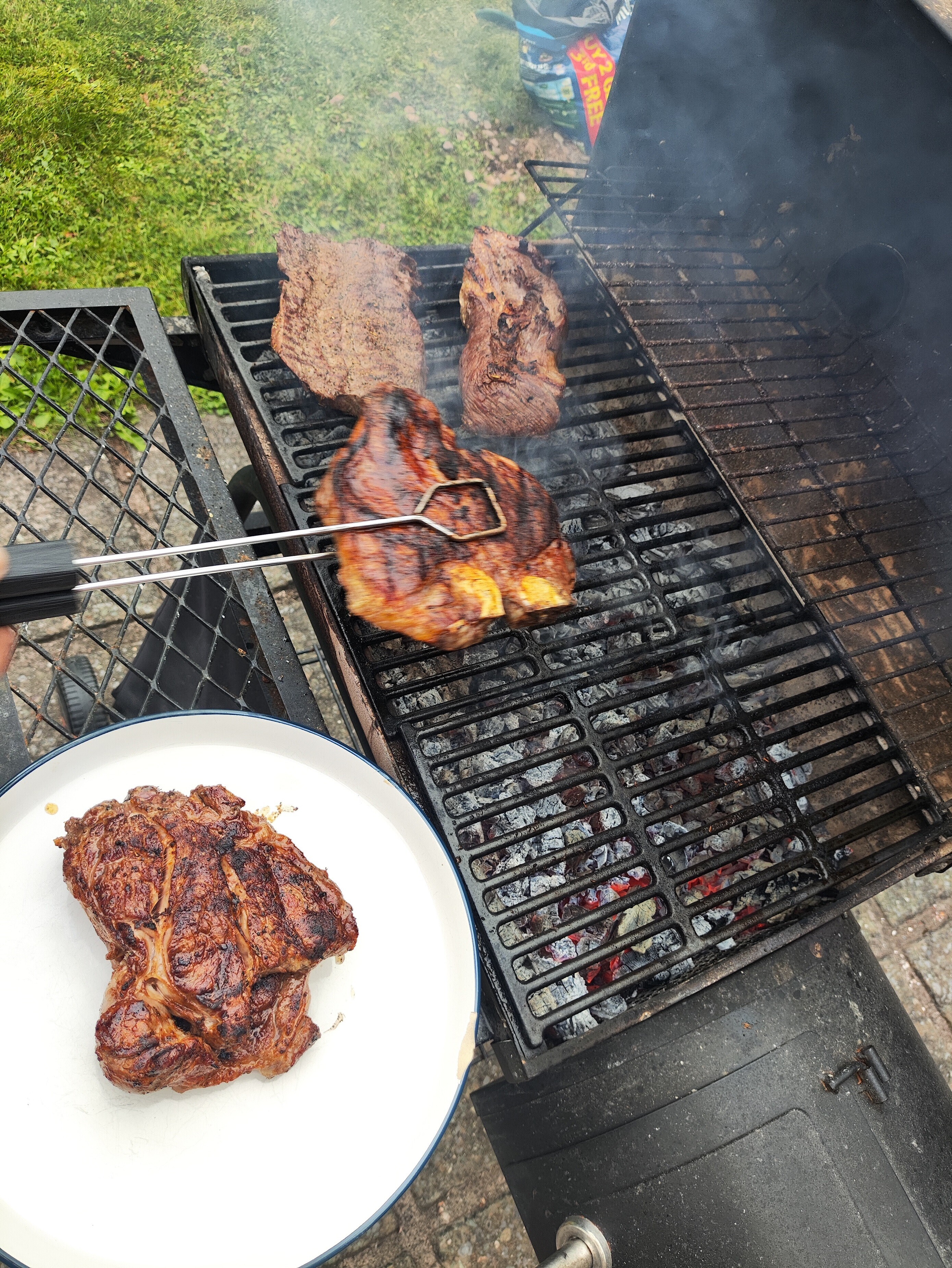 | Спасибо) это не у меня, а у принимающей стороны. Да, там две ступени. Меньшая - это источник дыма. Туда закладывают угли и нужный тип дерева, по классике болотную ольху, вкуснее дыма я не знаю. И оттуда дым идёт в бОльшую часть, где мы жарили стейки - тогда там просто лежат стейки, и коптятся. А можно сделать и комбинацию: и жарить слегка стейки, и одновременно коптить их в правильном дыму от меньшей ступени. Обычная двухступенчатая система, которая работает в очень многих областях. Позвольте приведу (излишне развернутый здесь) пример двухступенчатых систем в моём изложении. Чисто шутки ради. Поддержать разговор. Правда, долговато. Прошу прощения. | | |