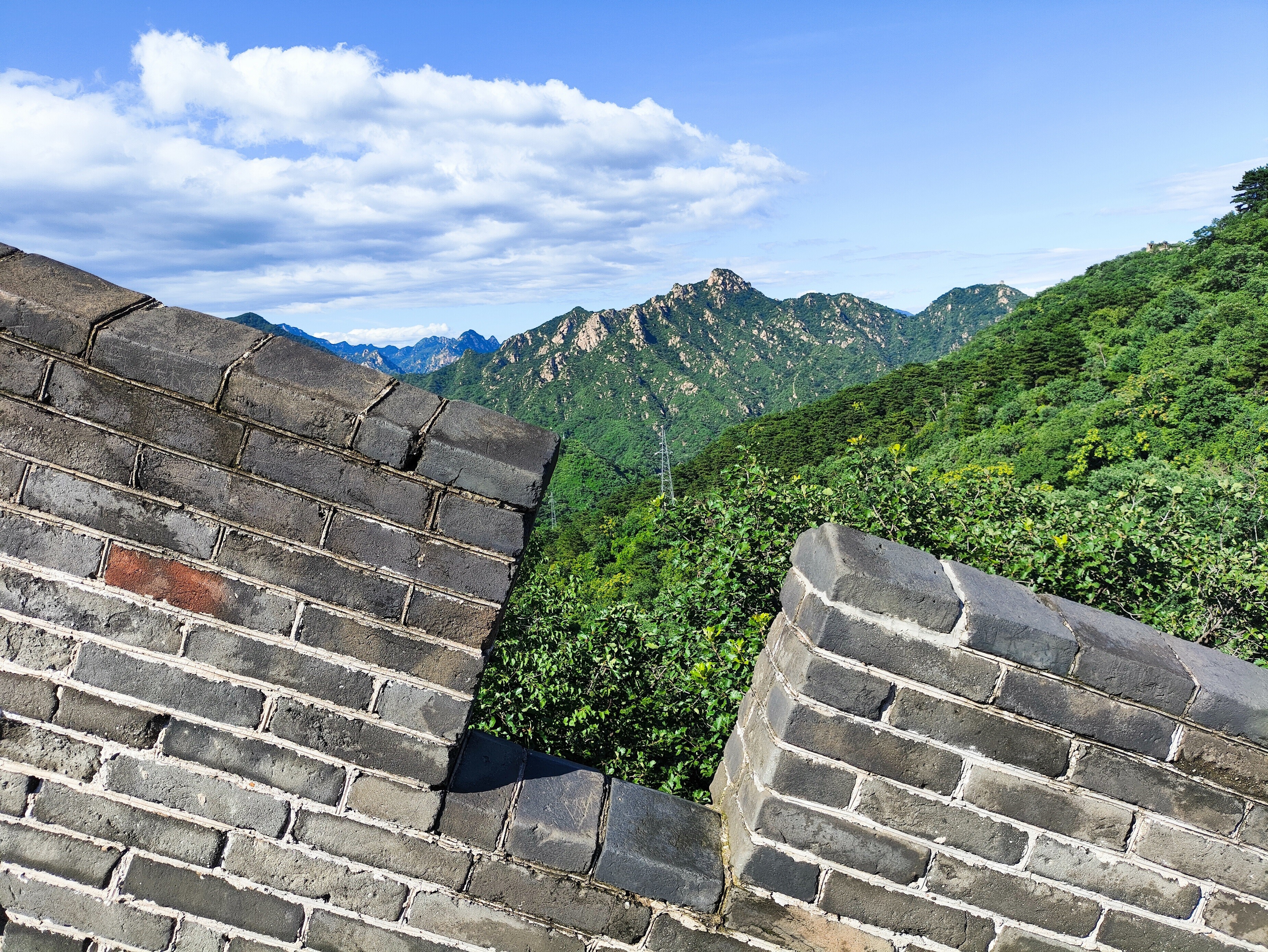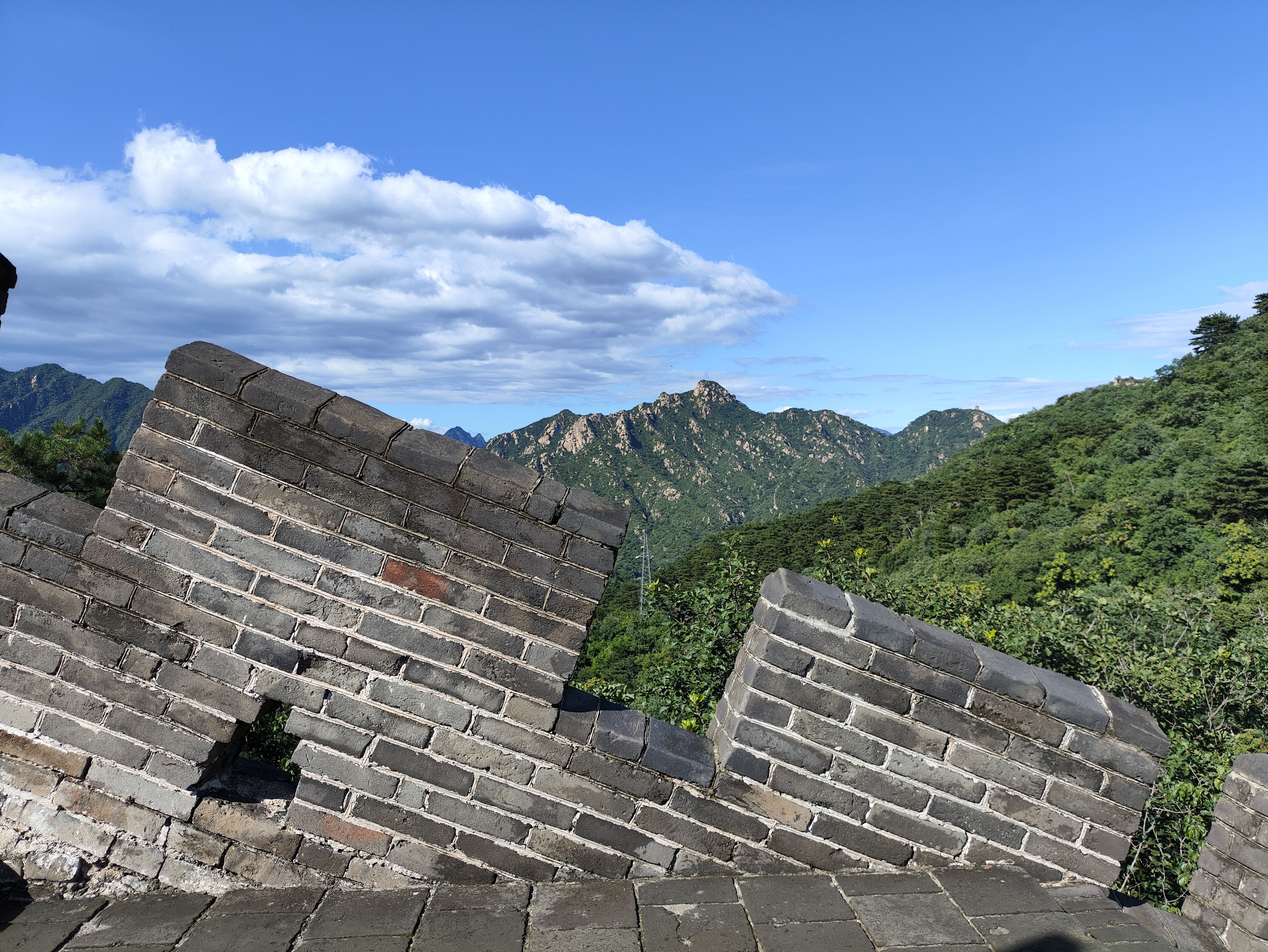 Но вот вам ещё три фото, хоть и похожие и невыразительные. Они сделаны тоже со стены. Это участок стены метрах в трёхстах от нас. Он интересен тем, что это не тронутый современной деятельностью участок стены, оставшийся в том виде, в каком дошёл до нас. Как сохранился, так и стоит. Вероятно, и не исследованный толком, а может, и вообще неисследованный. Таких участков огромное количество; доступ туда запрещён. Профессор стал развивать мысль, что надо нам туда попасть. Не обязательно на этот участок, но на такой же древний и нетронутый. Для этого нужны специальные разрешения и сопровождение. У профессора, вероятно, могут найтись рычаги для получения такого разрешения, и на меня в том числе. Но это так, благие намерения, ибо непонятно, когда будет ещё для этого удобный момент: нужно быть в Пекине, иметь свободный день для поездки в горы, и хорошую погоду в летний период. Можно и не в Пекине, стена большая; но как оказаться в таких местах? Тем не менее можно сказать, что я видел своими глазами и оригинальные, невосстановленные участки стены. Хоть и издалека ) И можно сравнить старую облицовку, зубцы, и угол падения стены, с тем участком, на котором мы были. Весьма похоже, надо сказать. Хотя там кое-где и видны отсутствующие зубцы стены. ![]() ![]() ![]() | | |