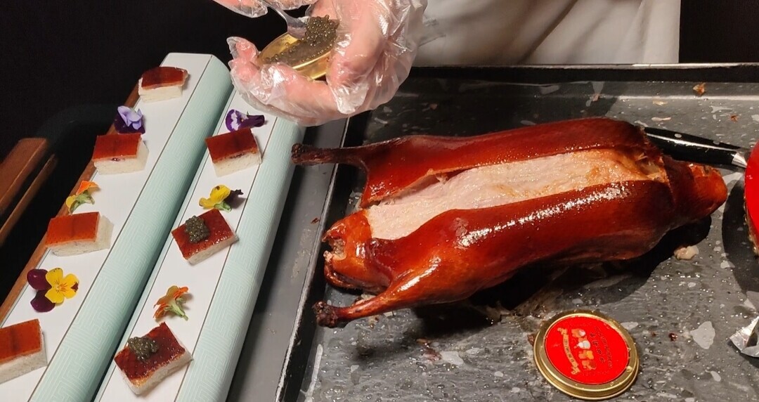 35-Куэнка > очень красиво: национальное платье и цветы. Осетровая икра на утке смотрится десертом) Блинчики удивили, сами как бумага, наверное, из рисовой муки.. | | |
