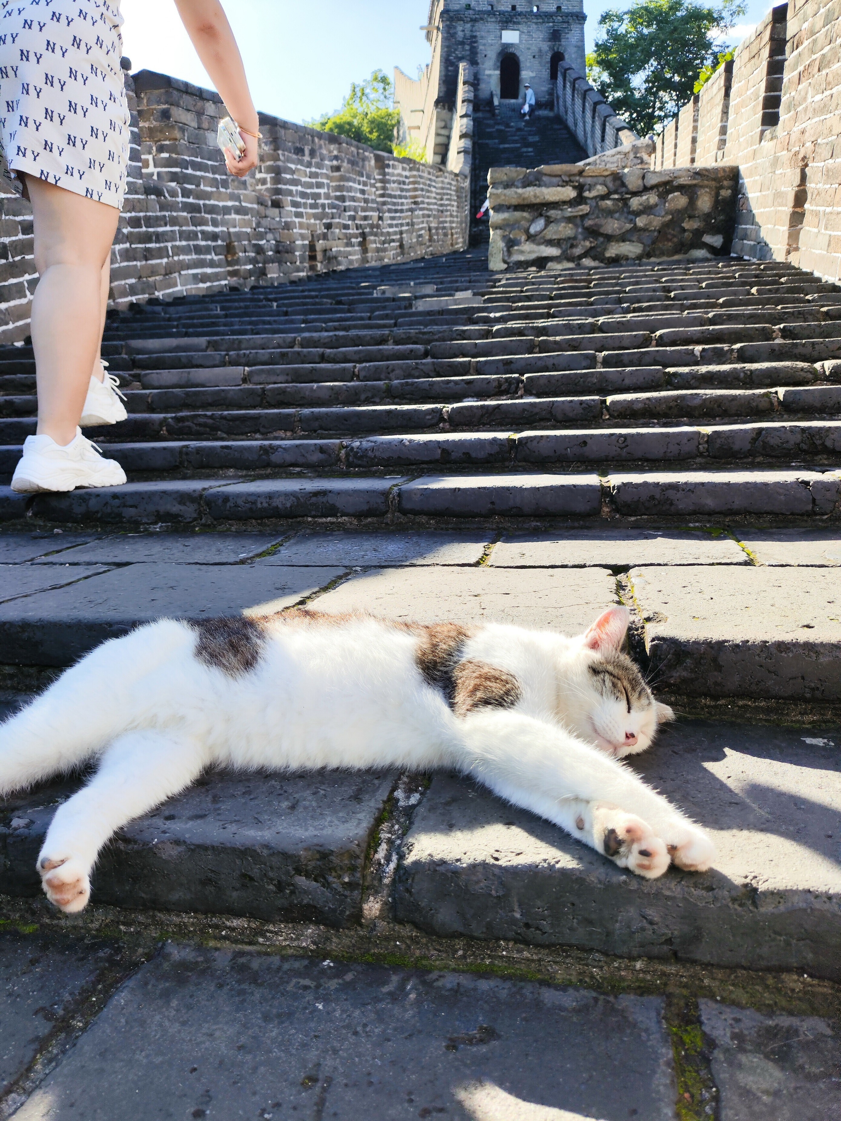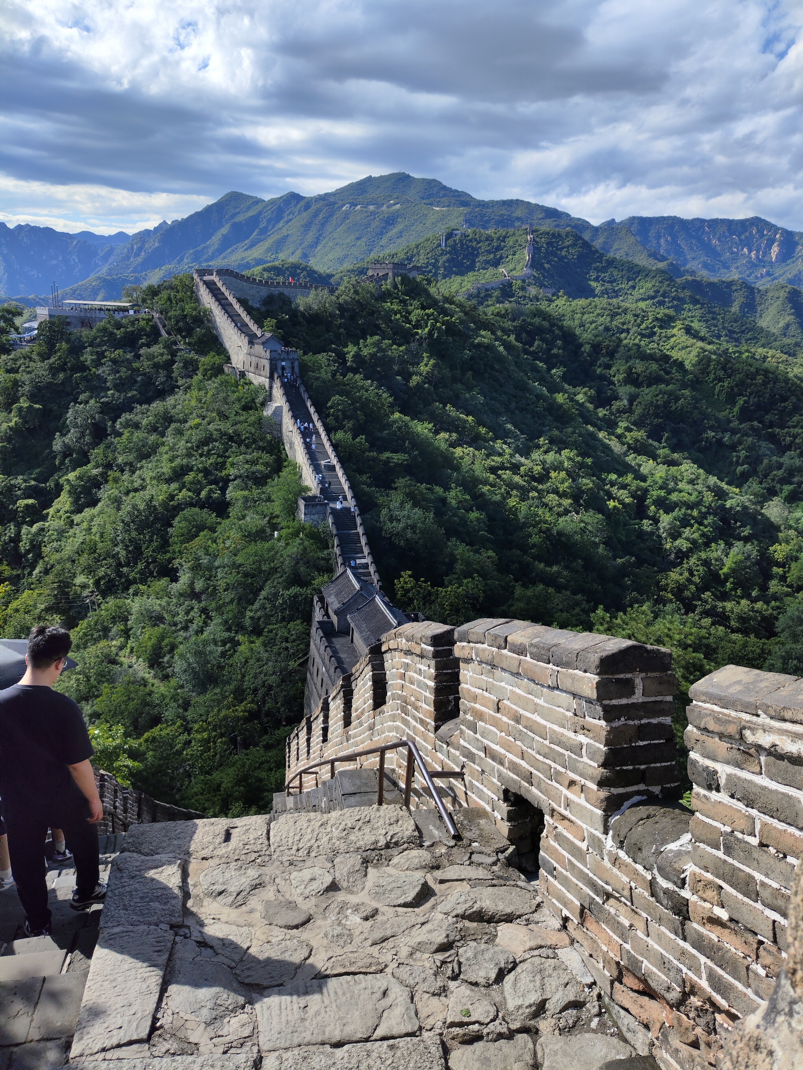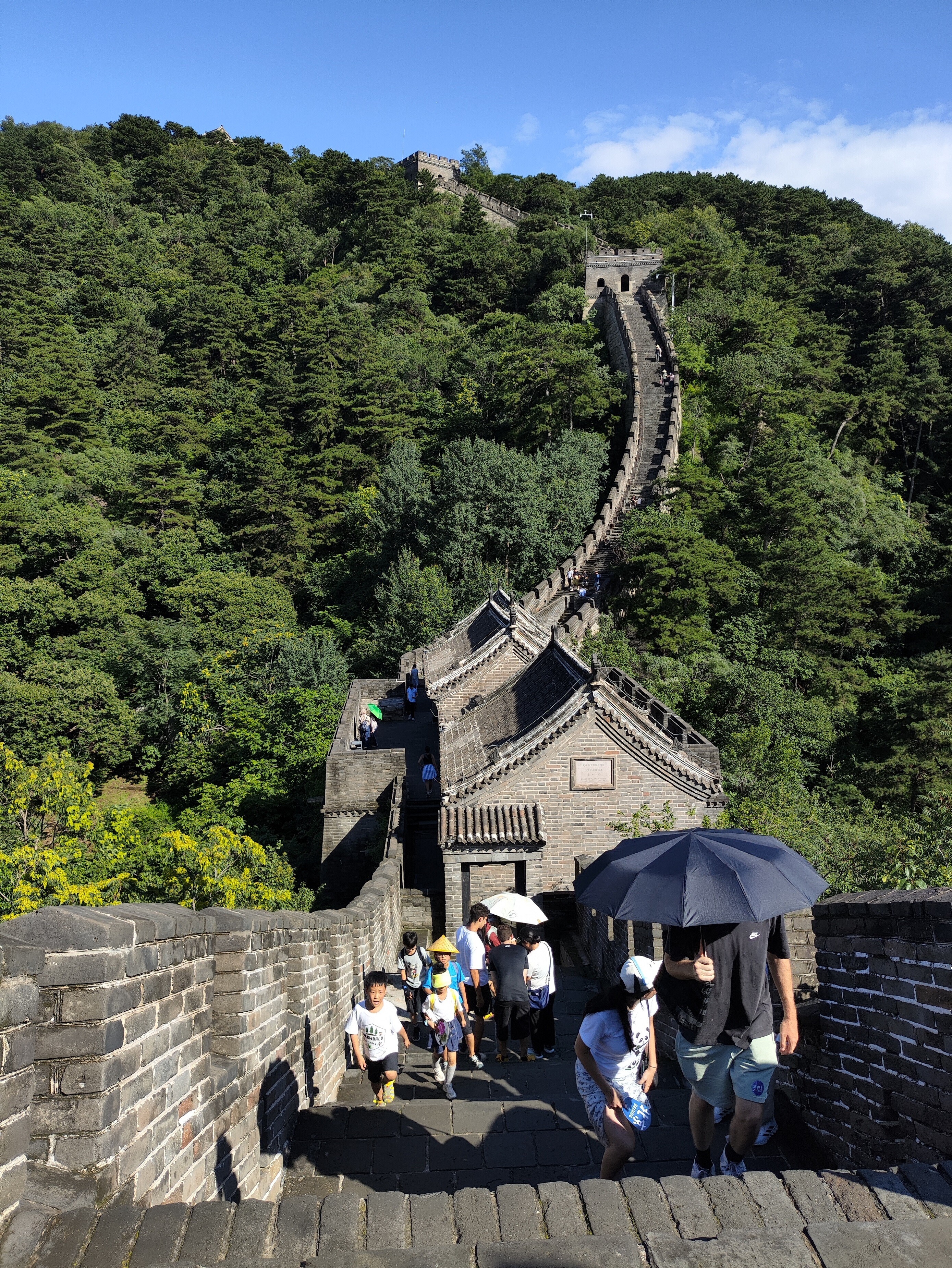 | Кирпич новодел, Монотипия. Но это не уменьшало того, что в метре-полуметре под ним лежал древний массив материала ещё с того времени, 2200 лет назад. То есть сама основа стены подлинная - где ещё найдёшь сейчас столь колоссальное количество материала? - но наружная форма восстановлена вот этим новым кирпичом и кладкой. Этот участок стены открыт для посещения несколько лет назад. А всего на стену разрешен доступ на девяти участках. Строго по предъявлению паспорта, что "белым обезьянам" (так в Китае называются европеоидные иностранцы), что самим китайцам. Есть участки равнинные. Профессор, например, посетил стену в нескольких местах. А в этом месте бывал впервые. | | |