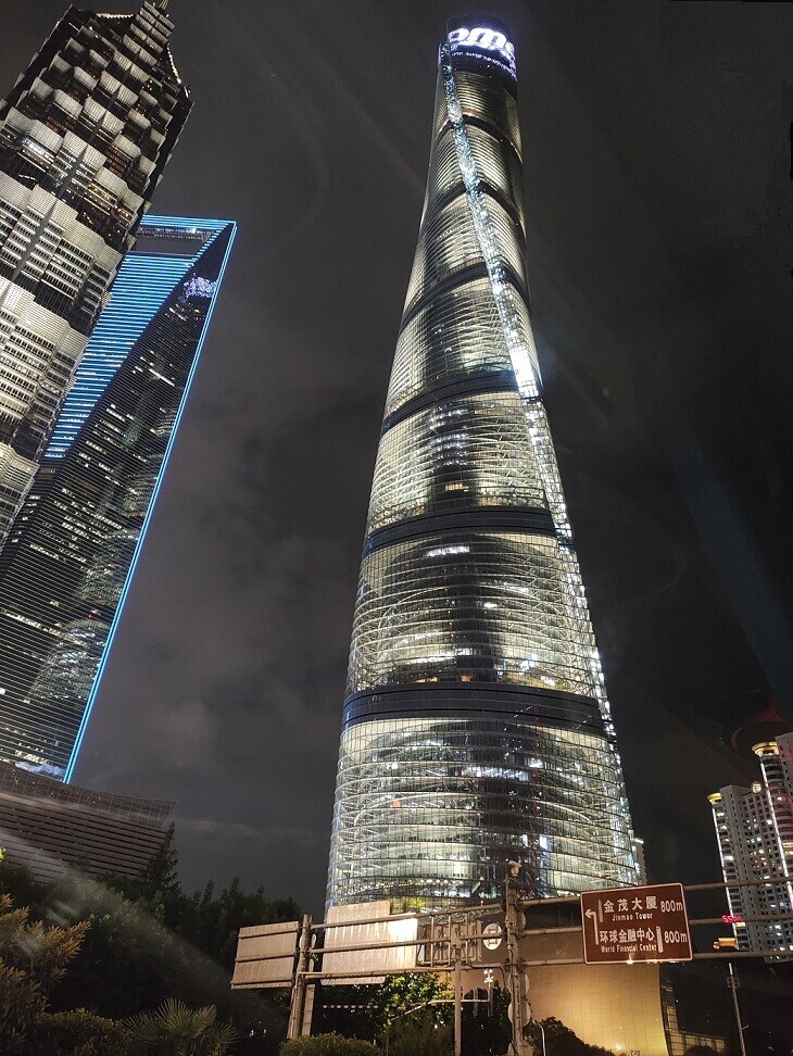 На 92 м выше Останкинской телебашни в Москве, Шанхайская башня была вторым зданием в мире по высоте (630 м) до 2023 года, когда в Куала-Лумпуре построили башню высотой 679 м. Из аэропорта Пудун на берегу Янцзы в восточной части Шанхая эту башню практически сразу видно как серую вертикальную кривульку над горизонтом, когда остальной высотной части Шанхая ещё не видать. С берега Янцзы башня видится на горизонте, и это интересный вид на двух гигантов, реку и башню, но с разных расстояний. В то время, как башня издалека многих километров видится небольшой, другого берега Янцзы практически не видно: ширина этой реки в Шанхае (он стоит практически на её устье) достигает 15 (пятнадцати) километров. И это именно ширина реки, а не её губы или дельты. | |