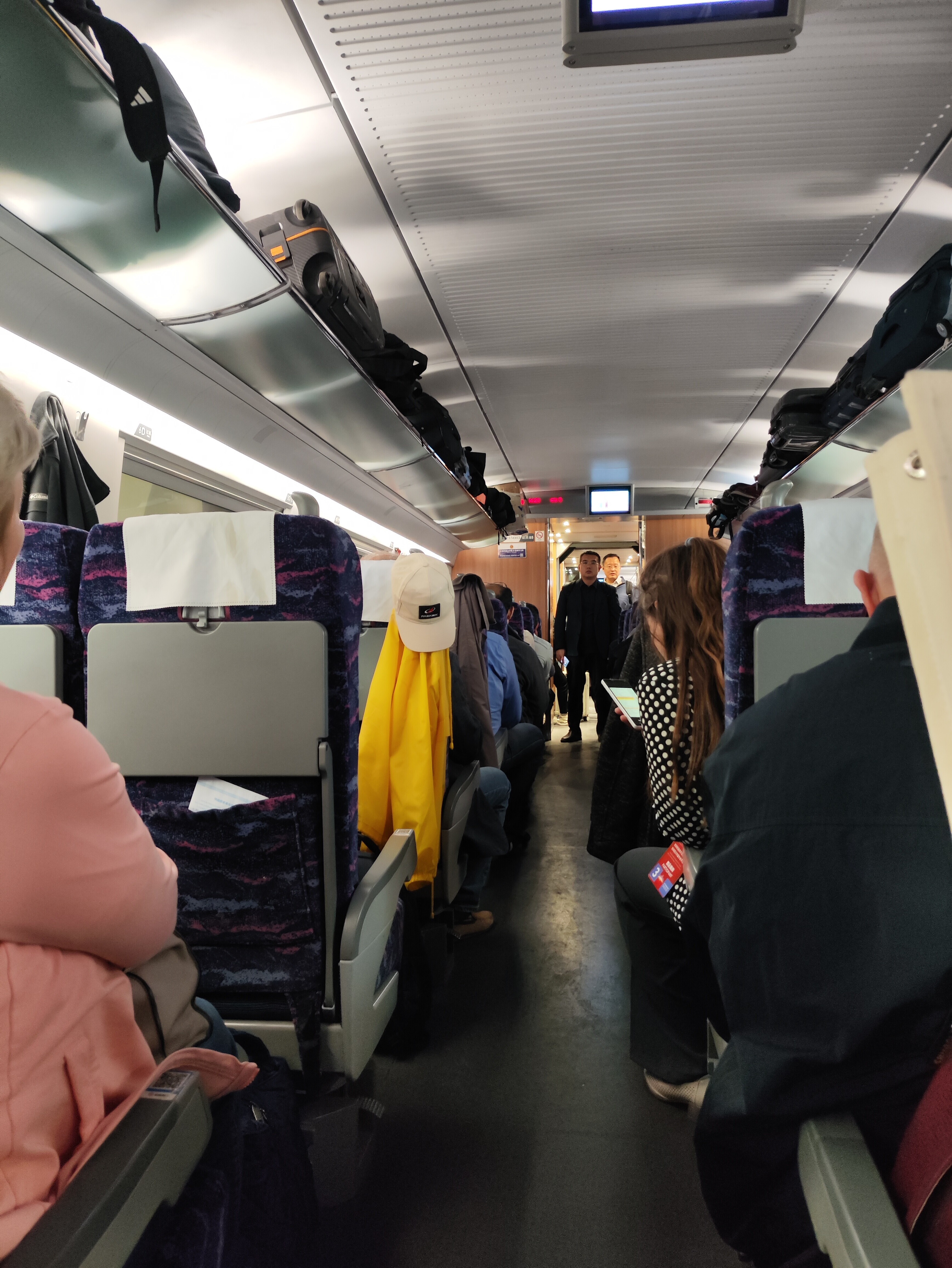 В китайских скоростных поездах есть очень удобное приспособление: сбоку от блока трёх кресел всегда есть педалька, немного выступающая в проход. Если вы на неё нажмёте, то можно блок из трёх кресел развернуть в противоположную сторону. Мы так и делали иногда: компания из шести человек вынуждена переговариваться с затылками друг друга и выворачивать шеи. Но нажав на педальку, мы разворачивали три передних кресла назад, и получалось купе на шесть мест, где сидишь лицом друг к другу и нормально беседуешь или вместе пьёшь пиво. ![]() ![]() | |