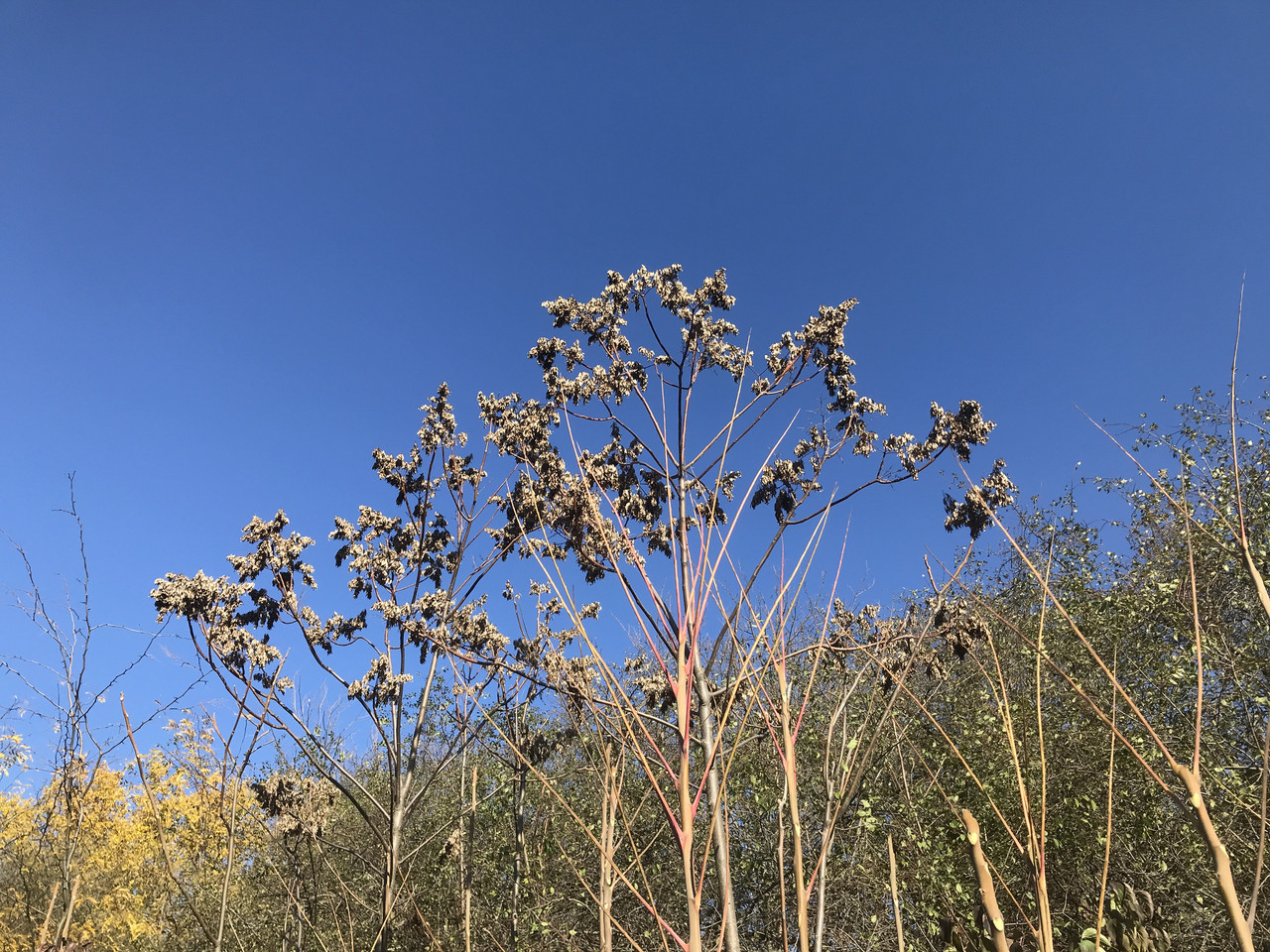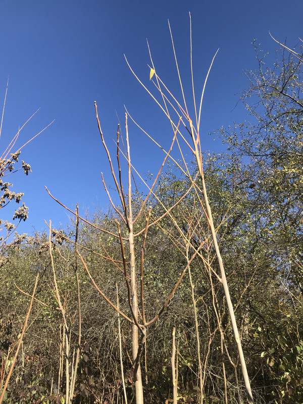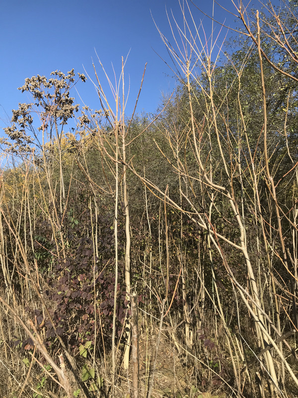 Может быть кто сможет написать что это за дерево или куст. Растёт вдоль дороги. Прямые стволы, кора гладкая. Одну ветку срезал, тяжелая древесина. Посох удобный получился для ловли в забродку. | |