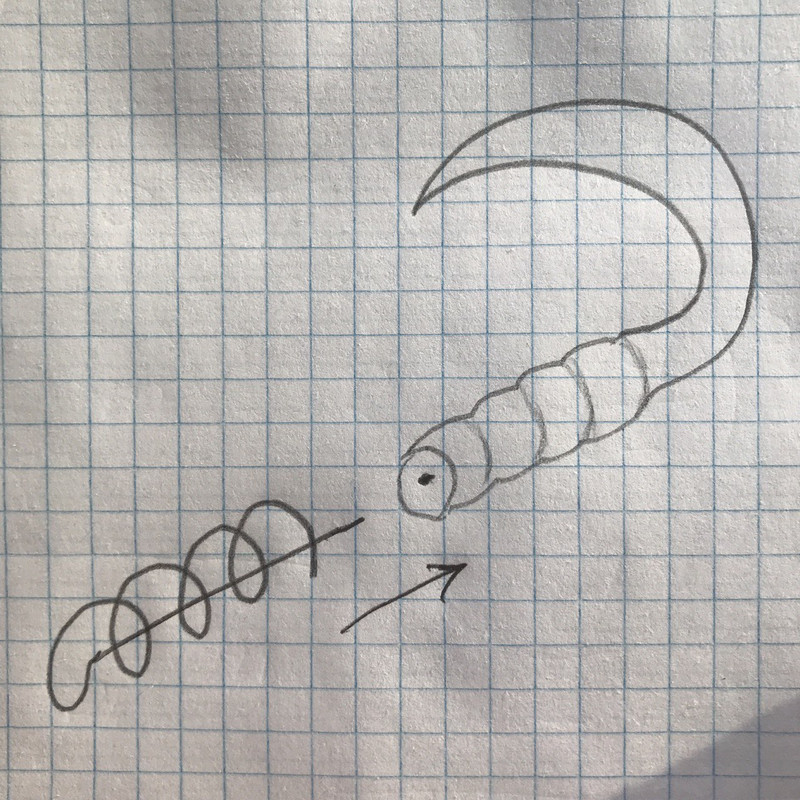 Нарисовал, как смог. В прокол/канал вставляешь направляющую штопорка. Тело приманки затем накалываешь витой частью и вкручиваешь штопор до упора. Обычно, ушко прячу в приманку. Сделанный иглой канал упрощает этот этот процесс и помогает выдержать направление. ![]() | | |