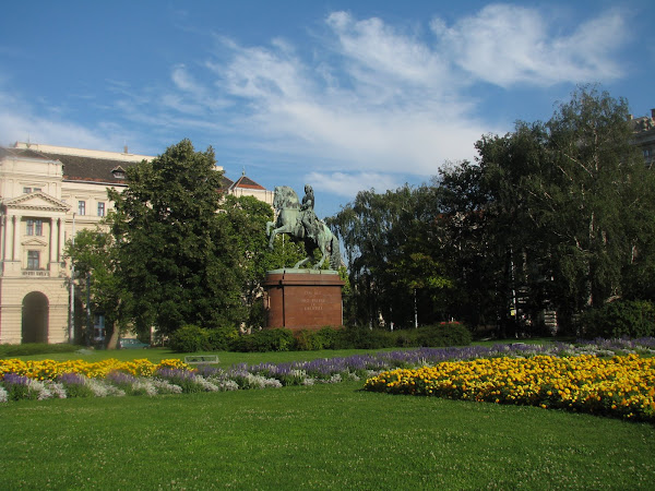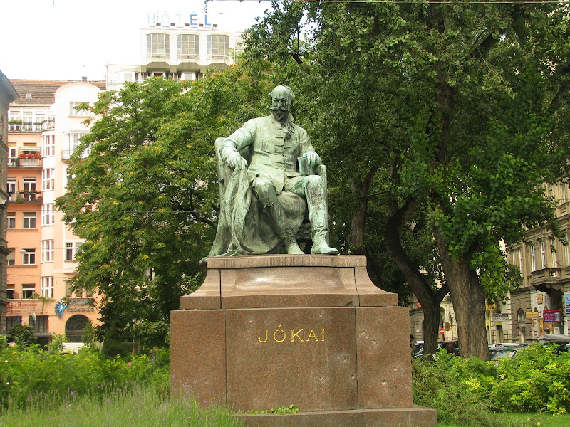 Недалеко - зеленая площадь Ференца Листа с памятником композитору: Типичный вид проспекта Андраши: Памятник Йокаи Мору: | | |