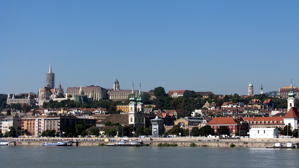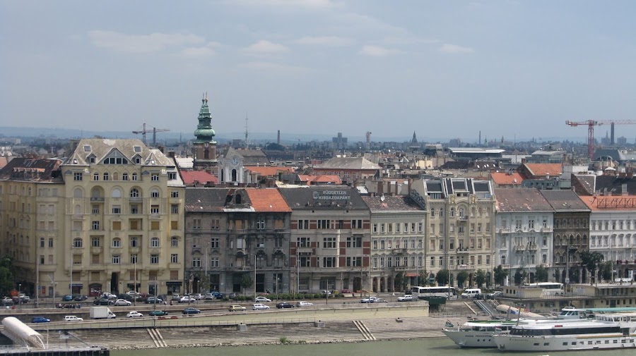 Ближе к площади Баттяни на берегу Дуная стоит кальвинистская церковь Буды: Жару пережидали в кафе-мороженом, не оставившим своего имени: Фото с пештского берега - Рыбацкий бастион, церкви святых Матиаша, Анны и Елизаветы: | | |