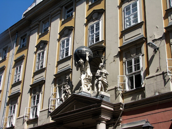 Фонтан "Дунай" на площади Елизаветы: Мозаика на здании бывшего турецкого банка: Монумент на площади Сервитов: | | |