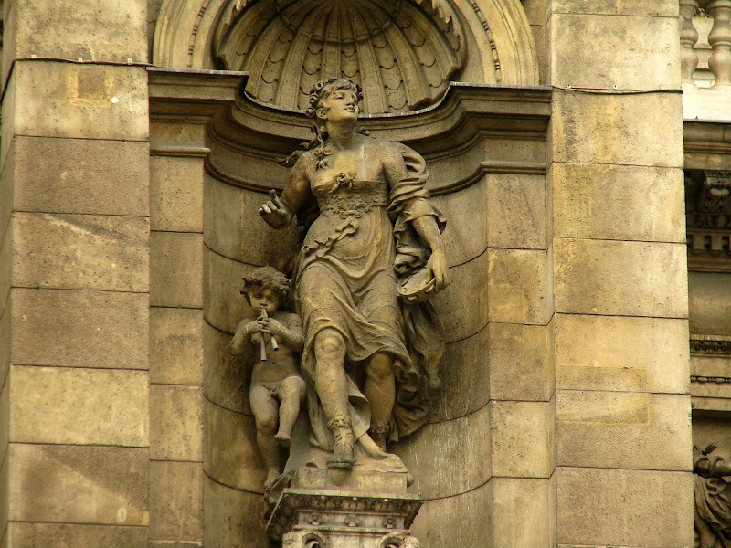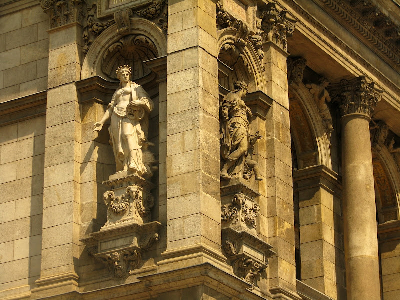 Базилику святого Иштвана, конечно, все знают: Пойдем от нее вдоль по проспекту Андраши. Там на всех почти домах приятные скульптурные мелочи: Фрагмент здания Оперы: | | |