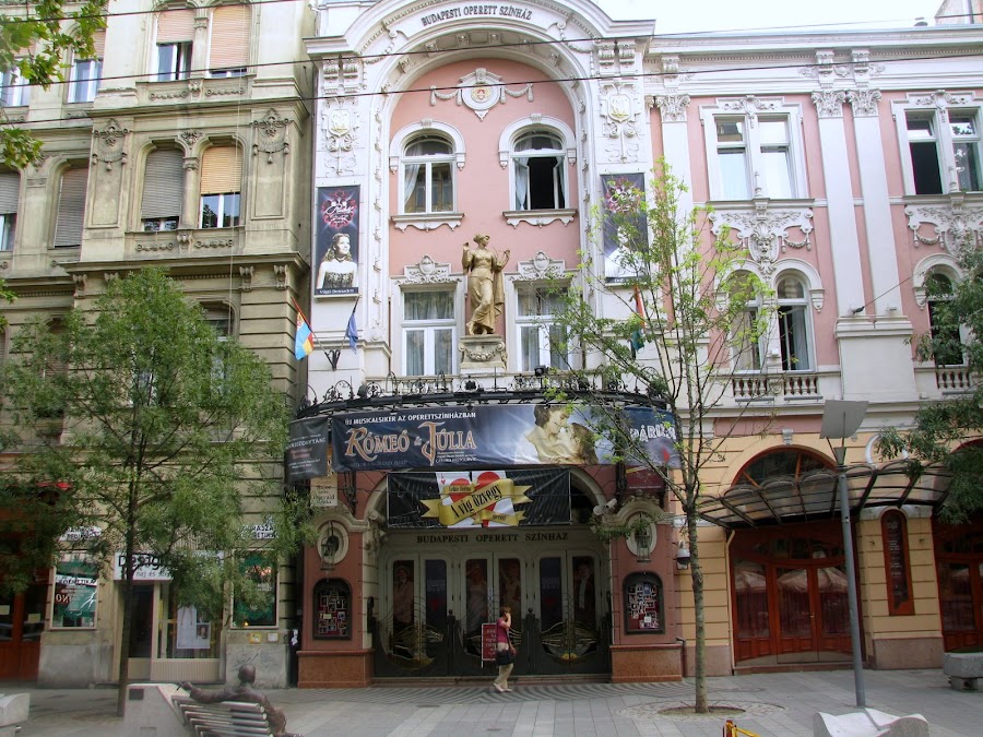 А это уже Театр Оперетты: Скульптурка рядом: И там же местный Мулин Руж :) Опереточный закоулок божественно хорош. Он называется улица Надьмезо, но это реально один квартал, примыкающий к Андраши. | | |