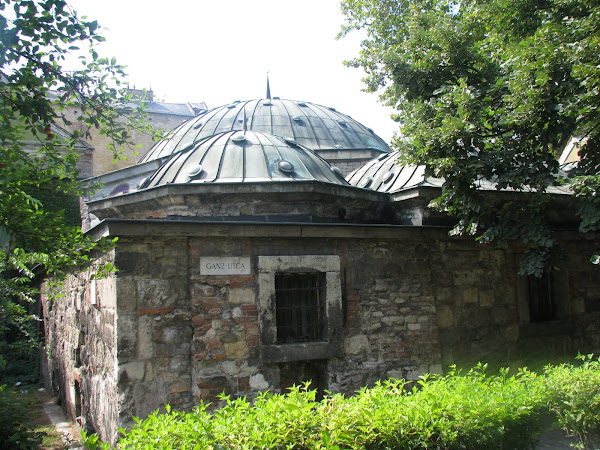 Снова потолок. Это кафе "Нью-Йорк" Купальня "Лукаш". Говорят, внутри лучше, чем снаружи: Улица имени Гюль-Бабы, неожиданно было увидеть такое в центральноевропейской столице :)) И мавзолей этого Бабы: | | |