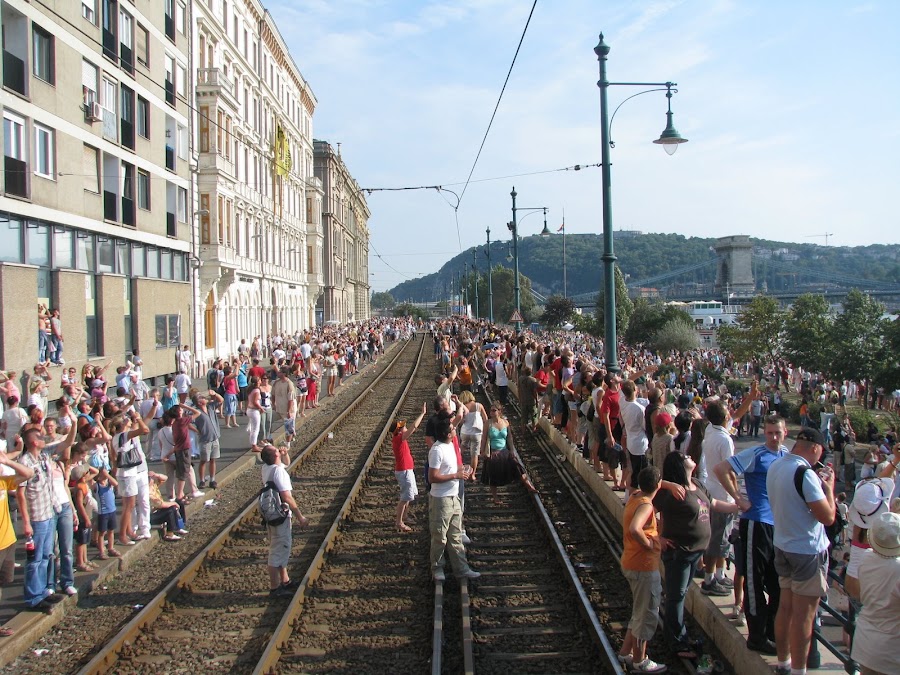| Вот эту штуку я есть побоялся, может зря? Кто в курсе - подскажите, на что это похоже? А ещё на время праздника (по сути весь день) не ходили трамваи вдоль Дуная, чтобы люди могли наблюдать шоу, соревнования и позже фейерверк: | | ||